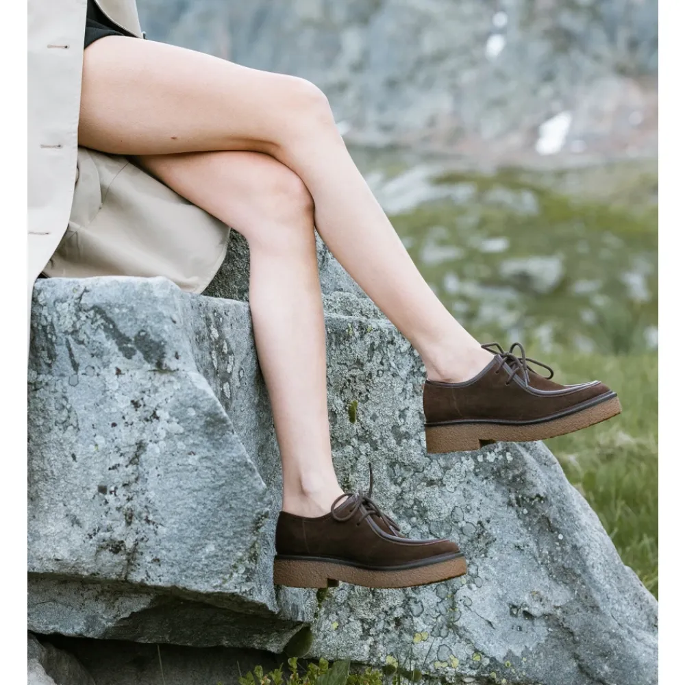 Maison Toufet Derby Roberta er en håndlavet derby i ruskind, fremstillet i Portugal, designet til et afslappet og elegant hverdagslook med en lav hæl på 2 cm og en fleksibel elastomersål. Vigtige egenskaber: Brun | Marron | Ruskind | Elastomersål | Bomuldssnørebånd | Derby silhuet | Ruskind finish | Oval tå | Lav 2 cm hæl | Mål og pasform: Hæl: 2 cm | Normal i størrelsen. | Sammensætning og pleje: Overdel: 100% læder (ruskind) | Foring: 100% læder | Indersål: 100% læder | Ydersål: elastomer | Snørebånd: bomuld | Beskyt med en vandtætningsspray.