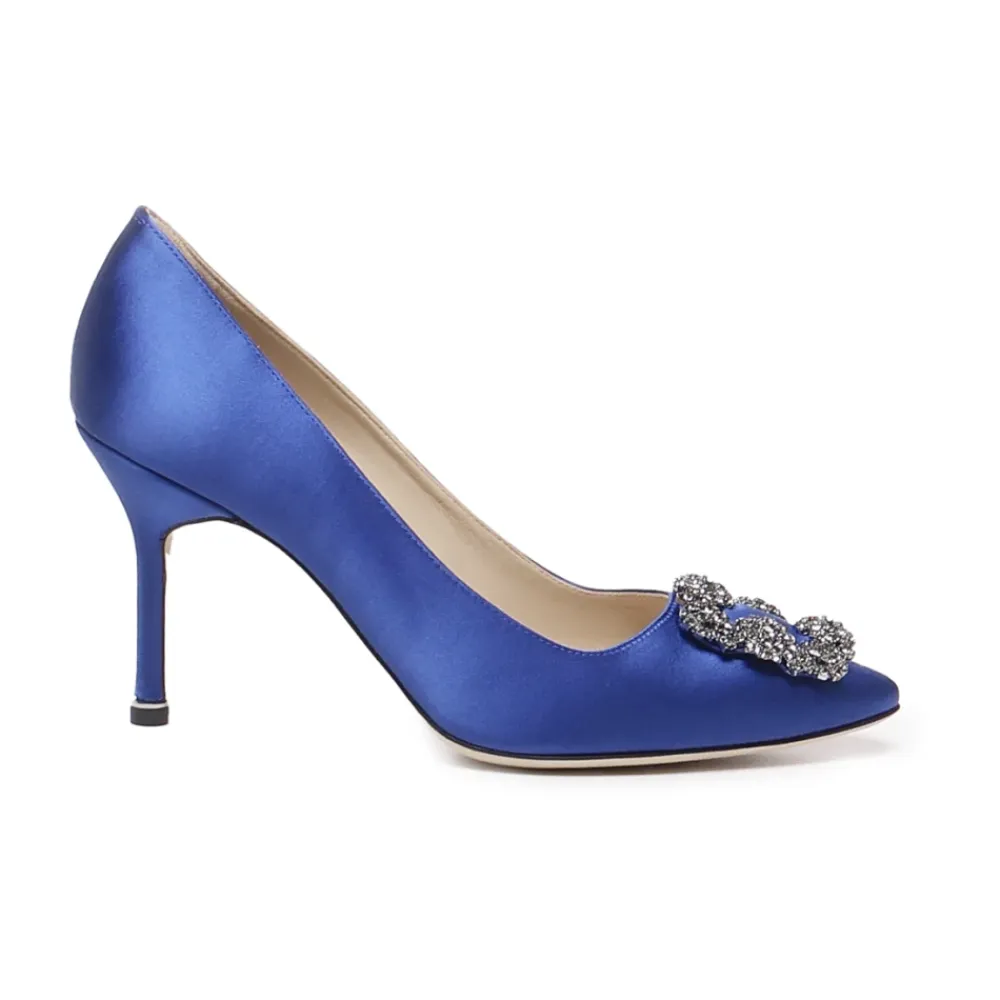 Manolo Blahnik Pumps|Stiletter*Satin Krystal Spænde Hæl Pumps Blå