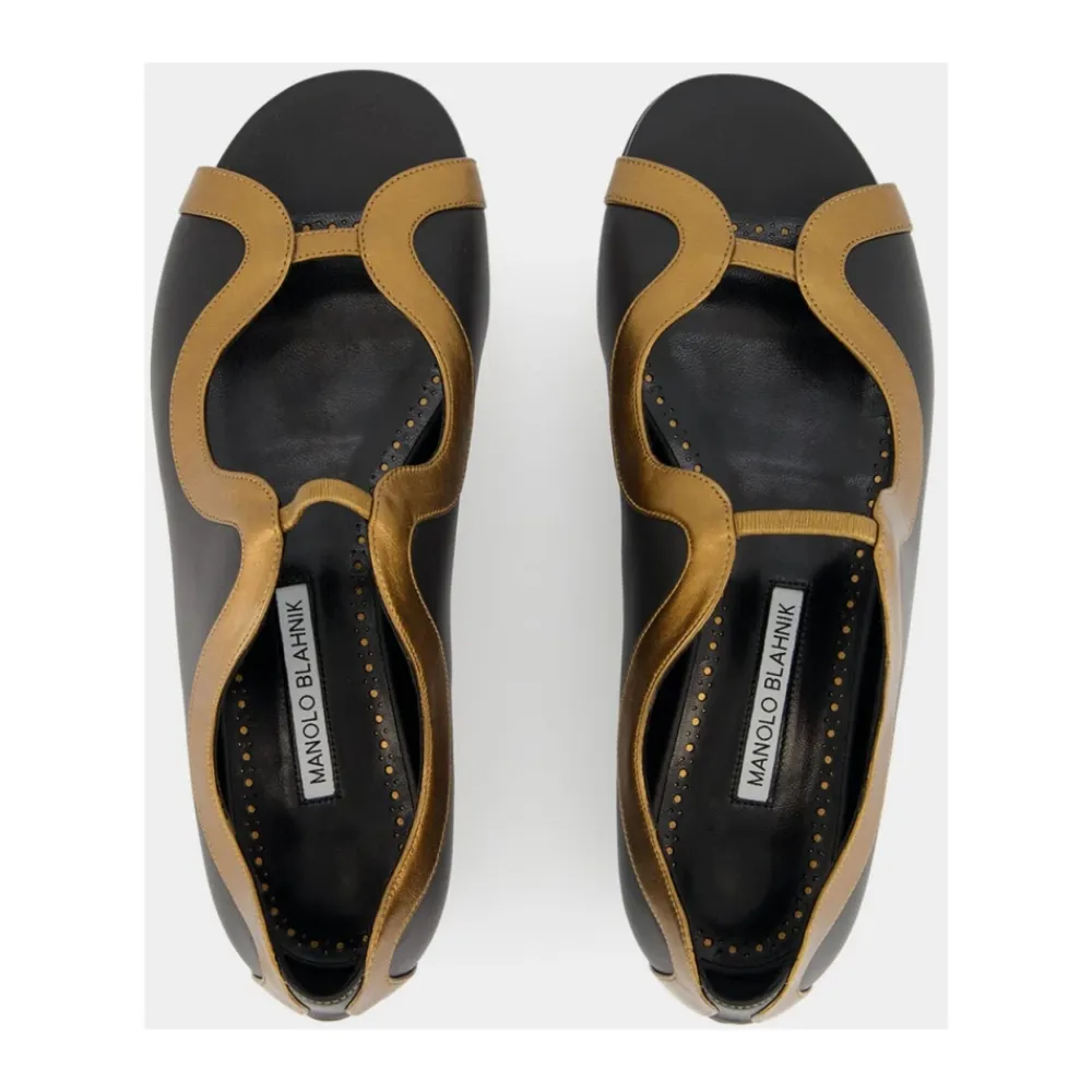 Manolo Blahnik Chilki Lædersandaler kombinerer blødt lammenappa-læder med en bronze slange-kant for en raffineret, overgangs-flad sandal. Den åbne tå silhuet og lave stablede hæl gør dem velegnede til pæne efterårslooks og hverdagsbegivenheder. Nøgleattributter: Sort | Bronze | Lammenappa | Åben tå | Bronze slange-kant | Stablet hæl | Fremstillet i Italien | Dimensioner & pasform: Hæl: 10 mm | Sammensætning & pleje: Overdel: 100% Lammenappa | Foring: 100% Kid Læder | Sål: 100% Kalvelæder | Specialist læderrensning.