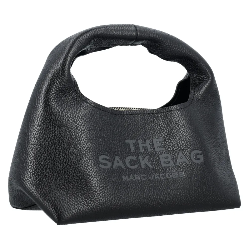 Forøg din stil med denne sorte Marc Jacobs ‘The Mini Sack’ håndtaske. Lavet af let fuldkornet læder, har den en tonal logo præget på forsiden og bagsiden. Tasken er sikret med en magnetisk snap lukning og inkluderer en intern lynlås lomme og slip lomme. Mål: Længde: 24 cm, Dybde: 13 cm, Højde: 14 cm, Håndtag: 12 cm.