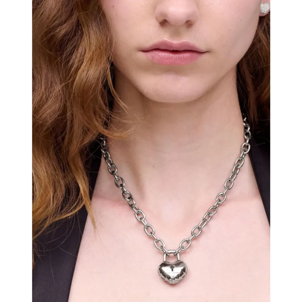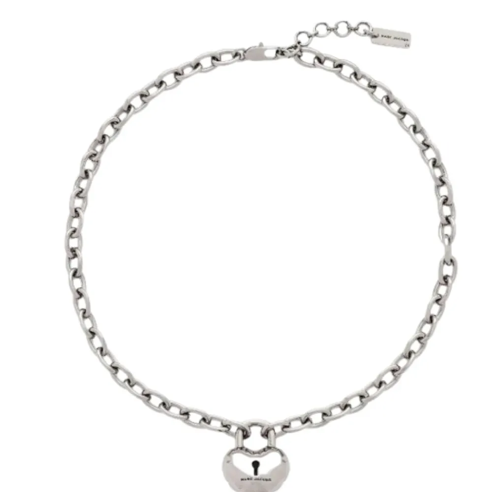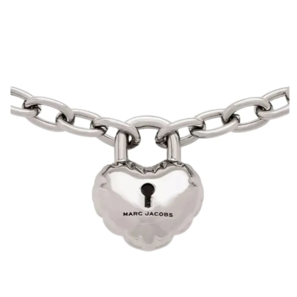 Marc Jacobs halskæde med kædeled, der har en hjerteformet lås med et indgraveret logo og en karabinlås. Et poleret, skulpturelt tilbehør, der passer til hverdagsbrug og lagdelt styling. Nøgleattributter: Grå | Antik sølv | Sølvfarvet metal | Karabinlås | Kædeled | Hjerteformet lås | Indgraveret logo