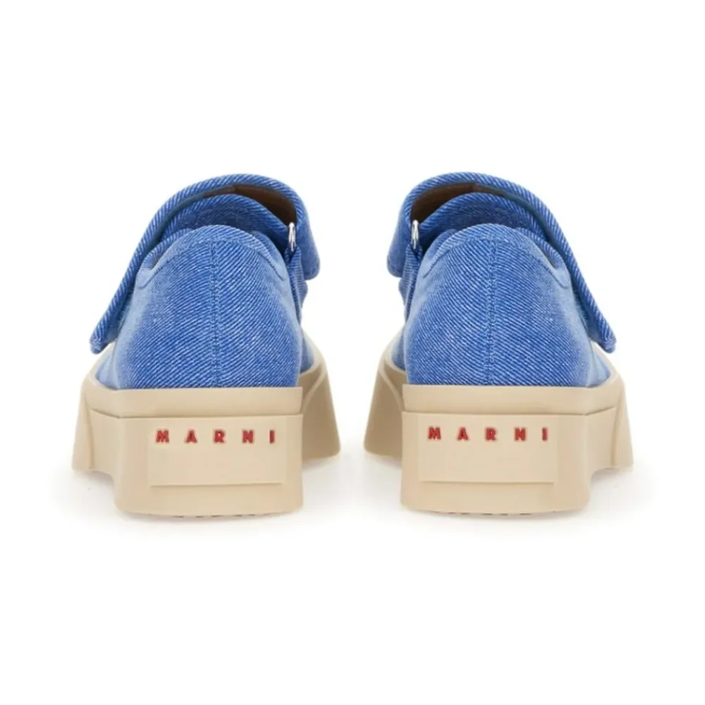 Marni Pablo Mary Jane Sneaker opdaterer den klassiske Mary Jane med en denimoverdel og en chunky platformssål. Designet kombinerer hverdagsbrugbarhed med en sikker justerbar rem for et komfortabelt, elegant look. Vigtige egenskaber: Blå | Denim | Bomuld | Justerbar velcrorem | Denimoverdel | Chunky gummisåle med tåkappe | Marni-logo ved hælen | Sammensætning & pleje: Overdel: 100% Bomuld | Foring: 100% Kalvelæder | Inderside: 100% Kalvelæder | Sål: 100% Gummi