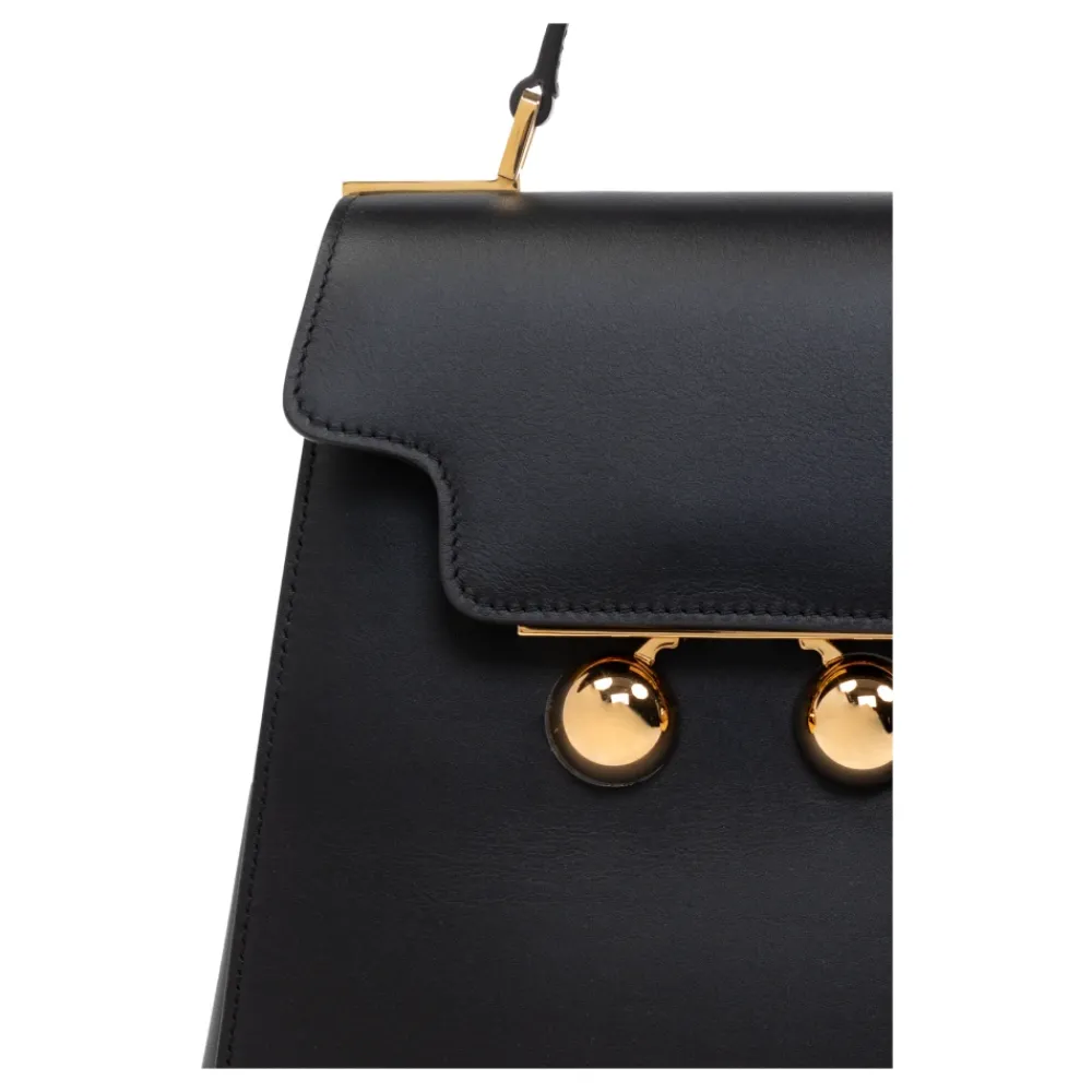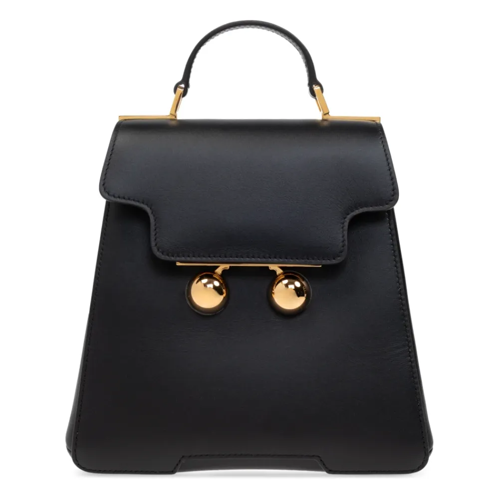 Vi præsenterer Trunkaroo Trapeze Rygsækken fra Marni, et luksuriøst læderaccessorie med en karakteristisk trapezform og elegante gulddetaljer, perfekt til alsidig styling. Produkt detaljer: Sort | Læder | Justerbare stropper | Rummeligt interiør | Trapezform | Guldspænde |