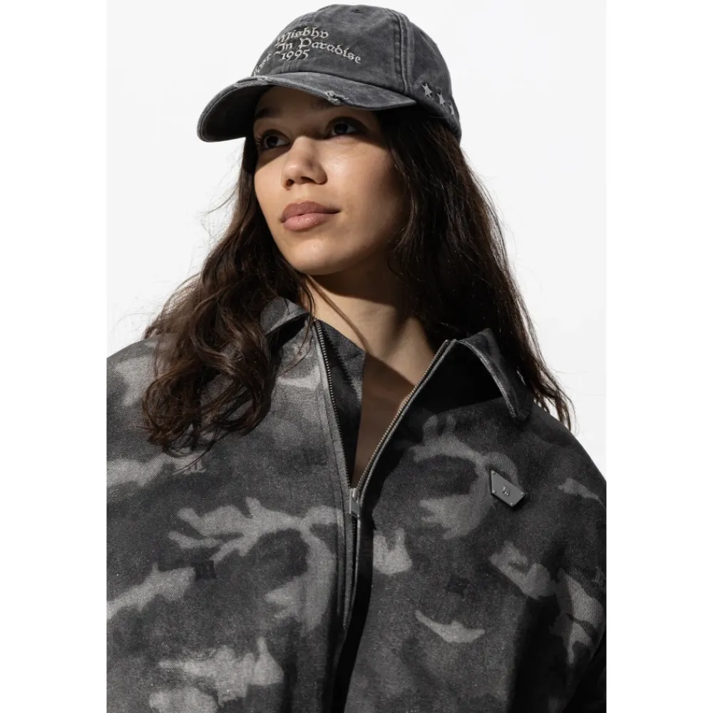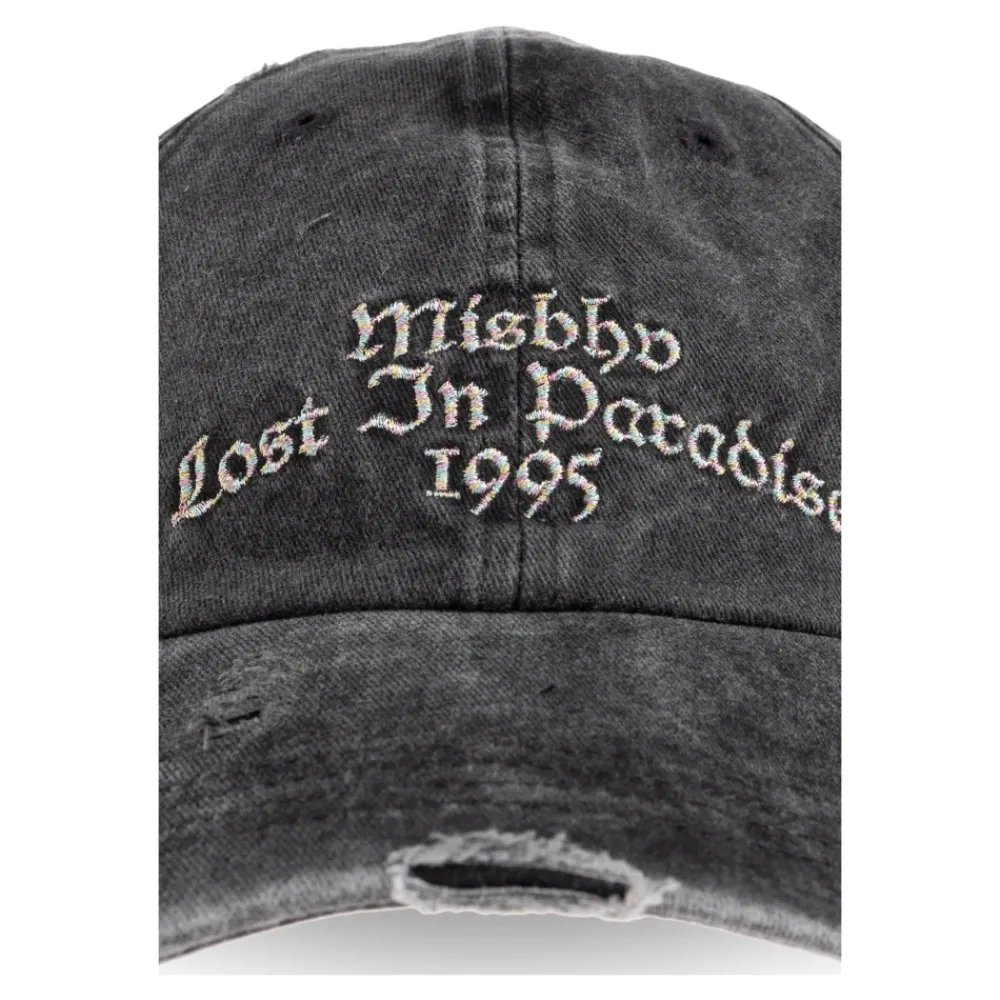 MISBHV Baseball Cap kombinerer mærkets moderne minimalisme med en bevidst slidt og ældet finish. Kasketten er designet til hverdags-streetwear og nem personalisering takket være dens velcrojustering. Vigtigste egenskaber: Grå | Grå | Bomuld | Velcrojusterbar rem bagpå for en tilpasset pasform | Slidt tekstur med udtalte slidmærker og tilsigtede rifter ved skyggens kant | Håndværksmæssigt frontbroderi med teksten Misbhv Lost In Paradise 1995 | Denim-finish overflade for et tekstureret look | Dimensioner og pasform: Justerbar pasform med velcrorem bagpå | Sammensætning og pleje: Bomuld