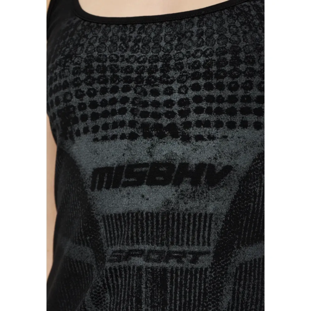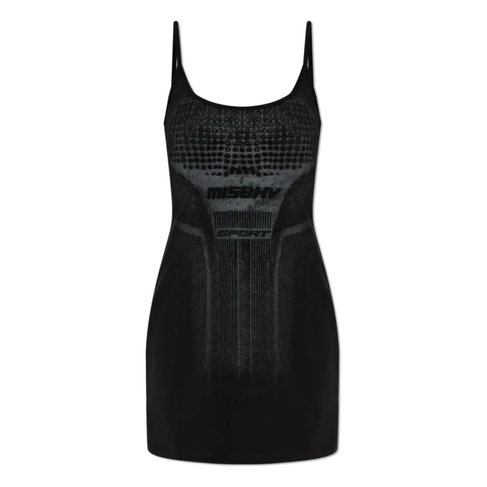 MISBHV Logo Dress kombinerer en tætsiddende mini-silhuet med markant grafisk branding for et urbant, sporty look. Designet fremhæver slanke linjer og justerbare stropper for et behageligt hverdags-statement. Vigtigste egenskaber: Sort | Stræk/elastisk stof for komfort og pasform | Let blank teknisk stoftekstur | Justerbare skulderstropper | Rund halsudskæring | Tætsiddende mini-snit | Grafisk frontprint med MISBHV-logo og ‘SPORT’-tekst | Geometriske linjer og prikmønster | Glat minimalistisk ryg | Dimensioner og pasform: Højde: 177 cm | Bryst: 83 cm | Talje: 61 cm | Hofter: 89 cm | Modellen er iført størrelse: S | Tætsiddende mini-snit