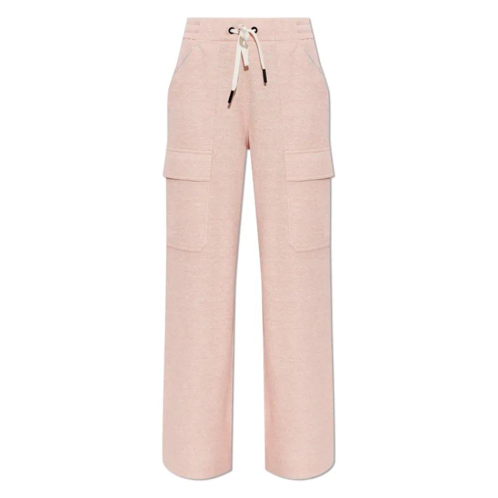 Moncler Grenoble DAY-NAMIC Trousers kombinerer sporty elegance med praktisk anvendelighed, designet til komfortabel hverdagsbrug. Deres brede, afslappede ben og melange pink nuance giver et distinkt luksus-casual look. Vigtigste egenskaber: Pink | Linned, Bomuld, Polyamid, Elastan | Blød følelse | Holdbar konstruktion | Stretch for bevægelsesfrihed | Store cargolommer med klapper på lårene | To skrå forlommer | Justerbar linning med hvid snøre og kontrasterende sorte spidser | Løst, lige snit | Bredt, afslappet ben | Subtil melange tekstur | Minimalistisk, logo-fri finish | Dimensioner & pasform: Modelhøjde: 177 cm | Modelbryst: 83 cm | Model talje: 61 cm | Model hofte: 89 cm | Modellen er iført størrelse: S | Løst, lige snit | Bredt, afslappet ben | Justerbar linning med snøre | Sammensætning & pleje: Linned | Bomuld | Polyamid | Elastan