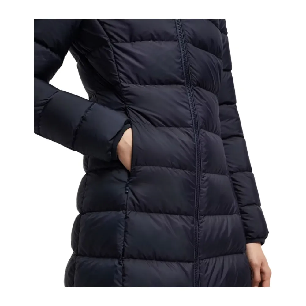 Moncler Gie Long Down Jacket er en lang, isoleret jakke designet til kolde og våde forhold. Den kombinerer en vandafvisende ydre med en aftagelig hætte, der er afsluttet med en skjult lynlås for strømlinet beskyttelse. Vigtigste egenskaber: Blå | Navy | Polyamid | Vandafvisende finish | Isolerende dunfyld | Aftagelig hætte med skjult lynlås | Lynlåslukning | Lynlåslommer | Lang længde | Filtlogo på ærmet | Mål og pasform: Regular fit | Modellen er 180 cm høj og bærer en størrelse 0 | Sammensætning og pleje: 100% Polyamid | 90% Dun | 10% Fjer | Må kun renses.