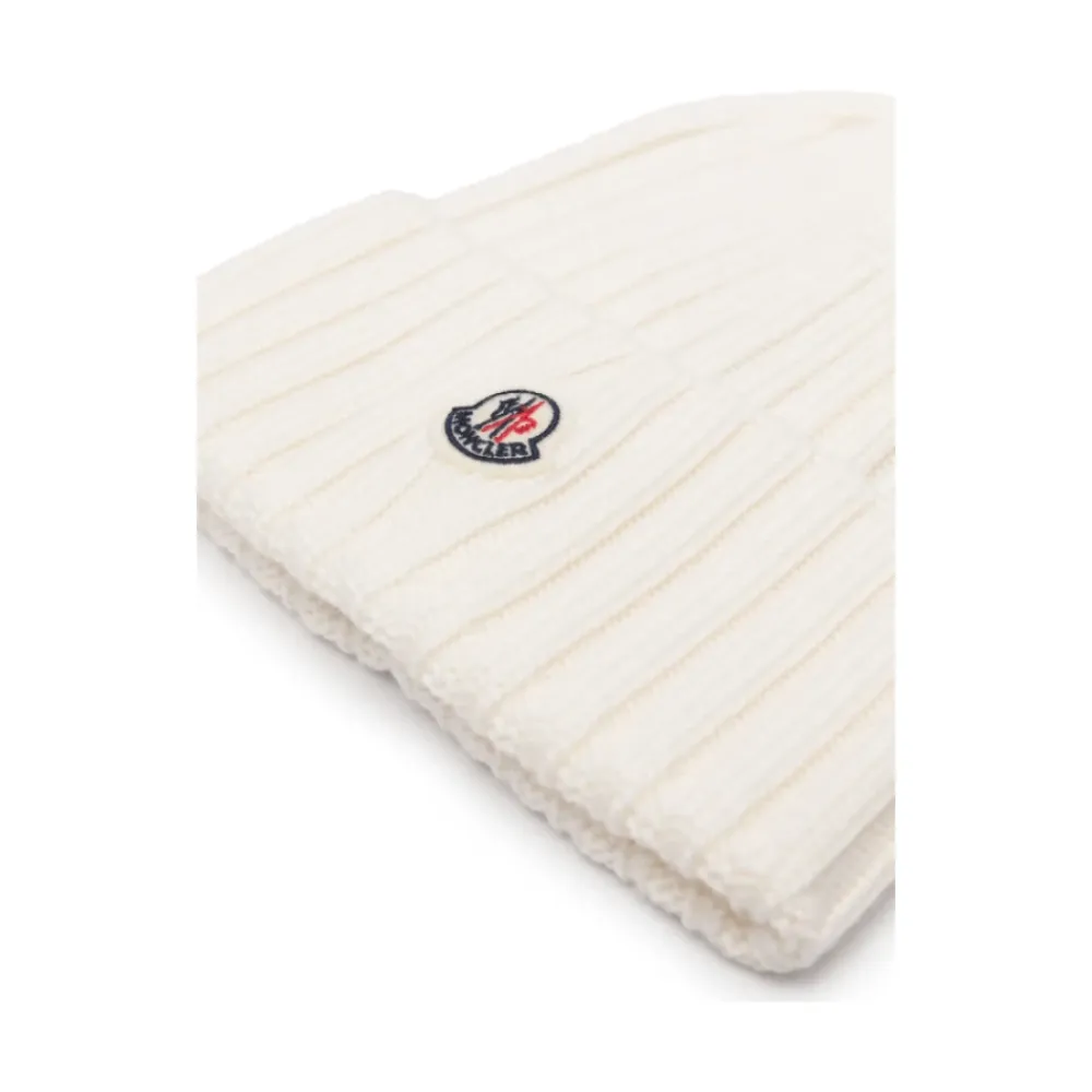 Moncler Huer & Kasketter*Ivory White Ribstrikket Beanie Hat Hvid