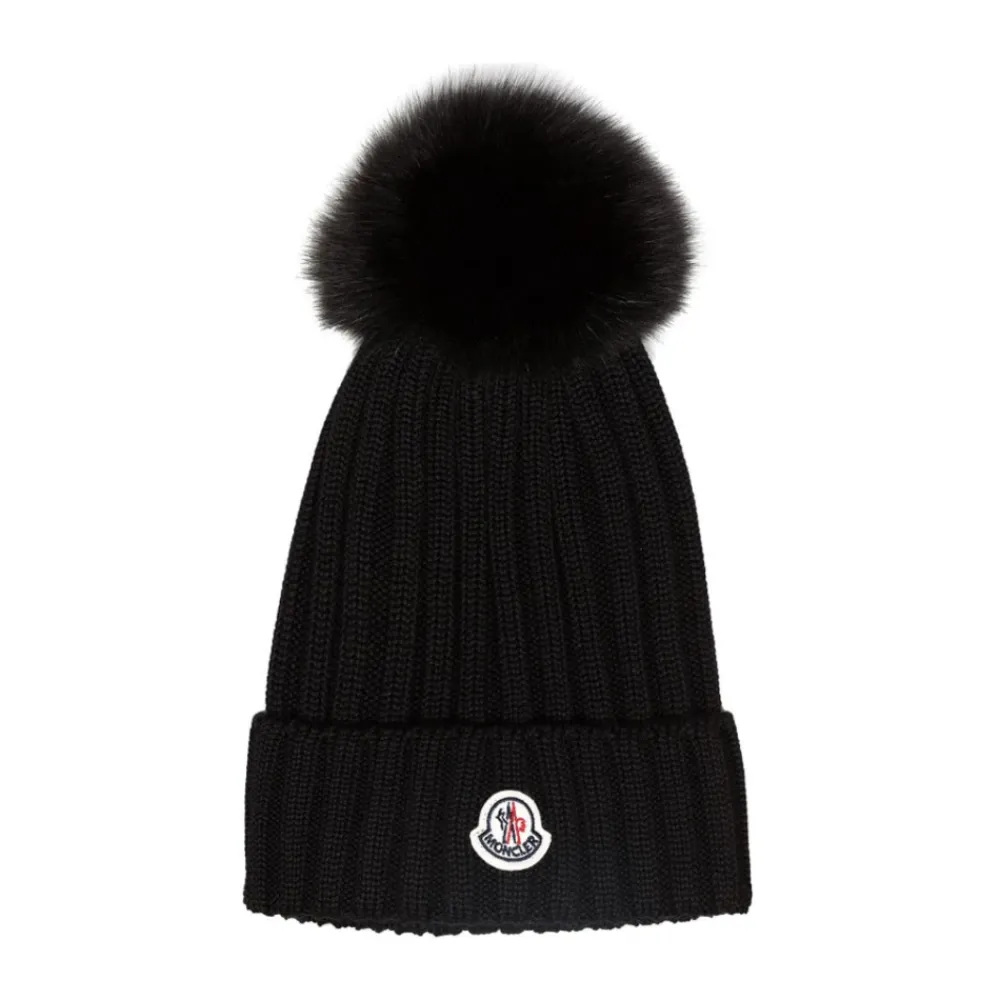 Moncler Huer & Kasketter*Pom Pom Beanie Sort