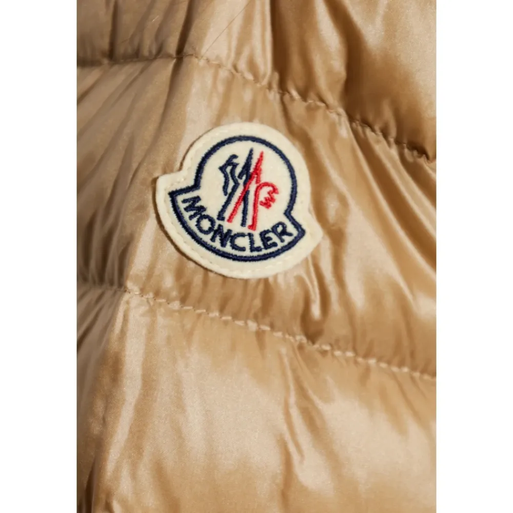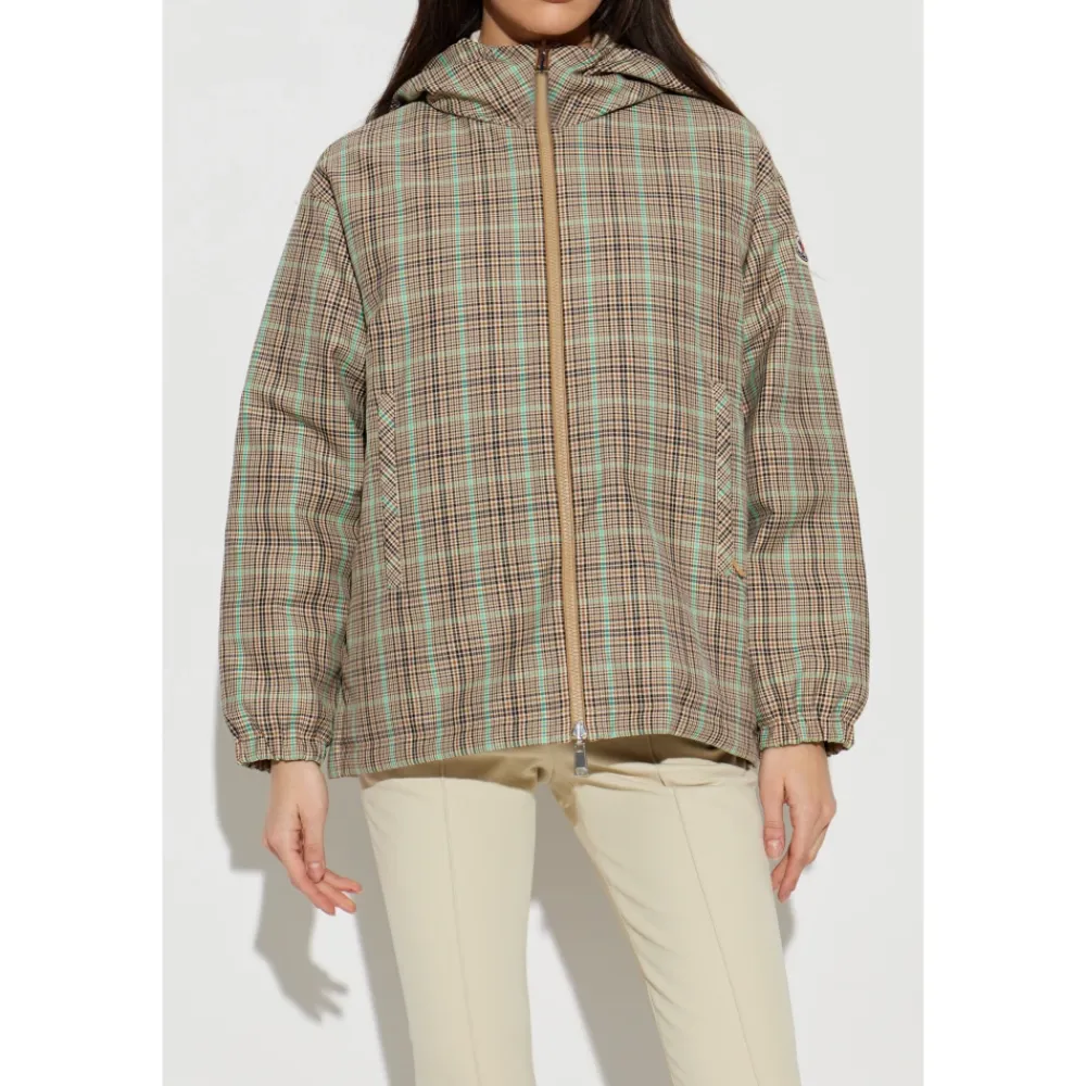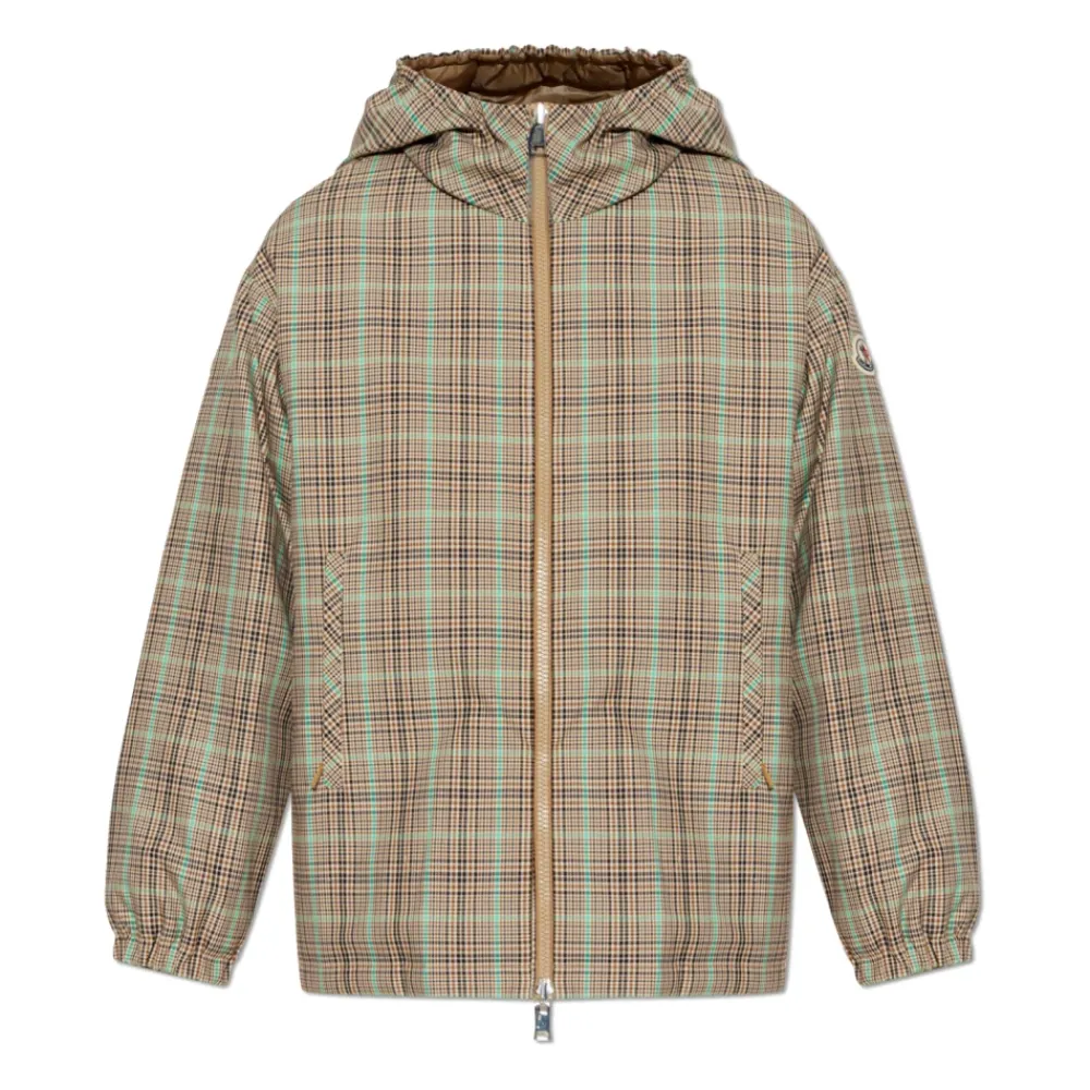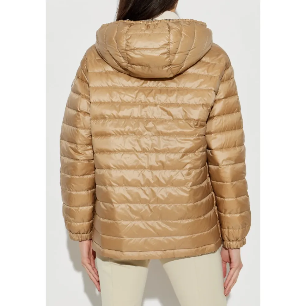 Moncler Grimpante Reversible Dunjakke giver to forskellige looks i én beklædningsgenstand, og skifter mellem et diskret ternet motiv og en blank quiltet side for alsidig lagdeling i koldt vejr. Nøgleattributter: Beige | Polyester og bomuld | Dunisolering | Letvægt | Beskyttende finish på skalstof | Reversibel konstruktion | Justerbar hætte | Lynlåslukning | Lynlåslommer | Sideslidser med trykknaplukning | Justerbare manchetter og kant | Reversibelt tosidet design | Ternet mønster på den ene side | Quiltet blank finish på bagsiden | Hætte silhuet | Mål & pasform: Længde (krave til kant): 68 cm | Modelmål — Højde: 177 cm; Buste: 83 cm; Talje: 61 cm; Hofter: 89 cm; Modellen er iført størrelse: 1 | Løs pasform | Sammensætning & pleje: Yderstof: 60% Polyester, 40% Bomuld | For: 100% Polyamid (Nylon) | Hættefor: 100% Polyamid (Nylon) | Vattering: 90% Dun, 10% Fjer | Håndvask; Må ikke bleges; Må ikke tørretumbles; Stryges ved max 110°C uden d Rens med carbonhydrider (mild process); Må ikke renses professionelt med vand; Tørres fladt i skyggen.