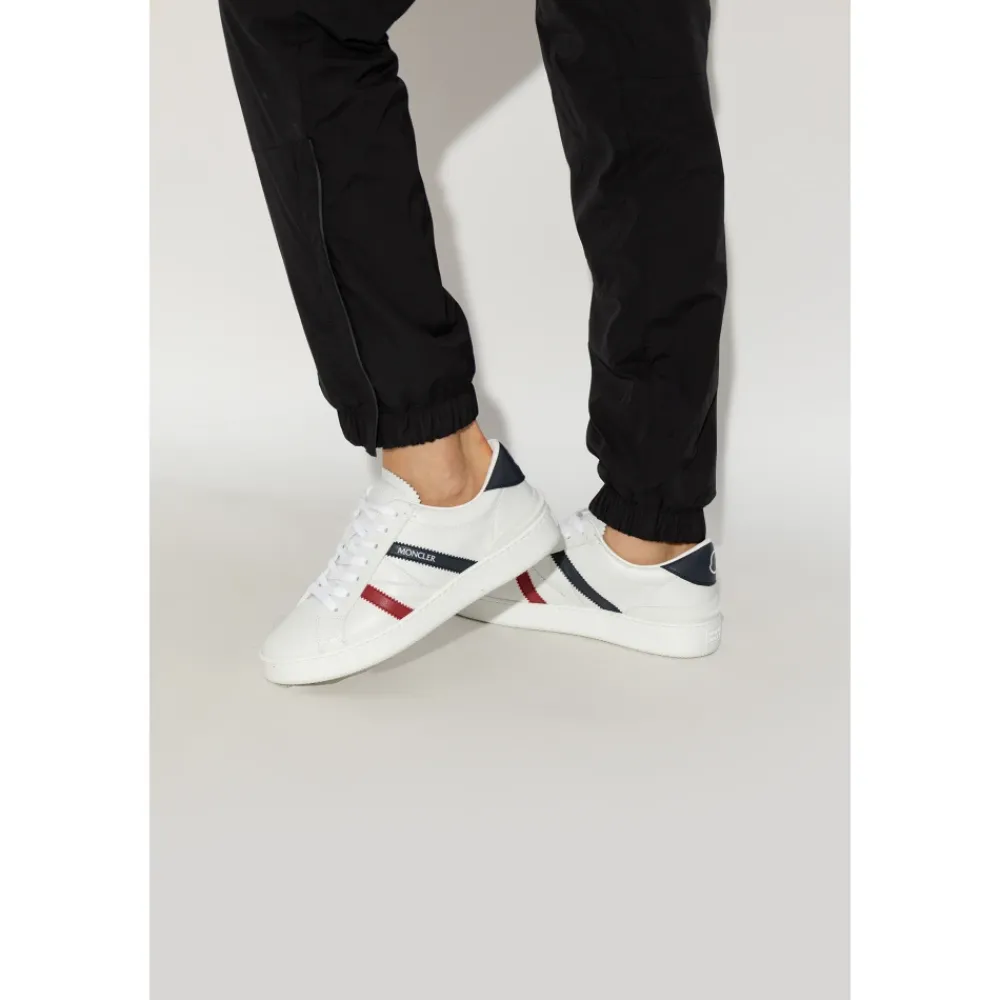Hvide og marineblå ‘Monaco M’ snøresko fra Moncler. Lavet af materialer, dette par er dekoreret med tre flerfarvede striber i form af bogstavet M og er sat på en hvid gummisål. Sål højde: 2,5 cm Sål højde på det højeste punkt: 3 cm