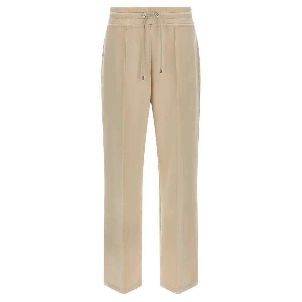 Moorer Bayonne Jersey Joggers kombinerer en høj talje, bred palazzo-silhuet med strækbar interlock-bomuld for et afslappet, men raffineret hverdagslook. Vigtige egenskaber: Beige | Bomuld | Strækstof | Elastisk taljebånd med snøre | Lommer | Høj talje | Bredt palazzo-ben | Central ribkant | Dimensioner & pasform: Normal pasform | Sammensætning & pleje: Bomuld 76% | Polyester 19% | Elastan 5% | Maskinvask.