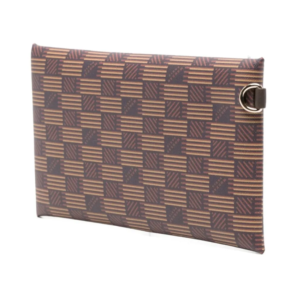 MOREAU PARIS Clutch i brunt læder med et geometrisk mønster og en aftagelig håndledsrem. Kompakt og praktisk til at bære det vigtigste til arrangementer eller på farten. Vigtige egenskaber: Brun | Læder | Aftagelig håndledsrem | Trykknaplukning | Sølvfarvet hardware | Geometrisk mønster | Clutch silhuet | Sammensætning & pleje: Læder