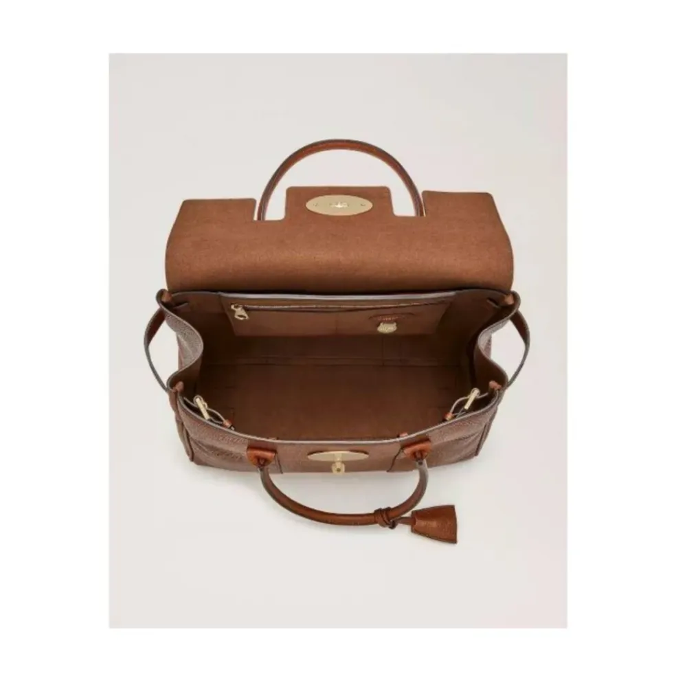 Mulberry Bayswater Tasken er en tidløs håndtaske designet til alsidig brug, med et rummeligt rum, der er ideelt til hverdags- eller arbejdsbehov. Produkt detaljer: Oak | Brun | 100% Læder | Rummeligt rum | To smalle lommer | Lynlås sektion | Ikonisk Postman`s Lock | Centralt drejelås med indgraveret logo | Dimensioner og pasform: Højde 26,5 cm | Bredde 36 cm | Dybde 16,5 cm | Hankefald 15,5 cm | Sammensætning og pleje: 100% Læder | Messing komponenter