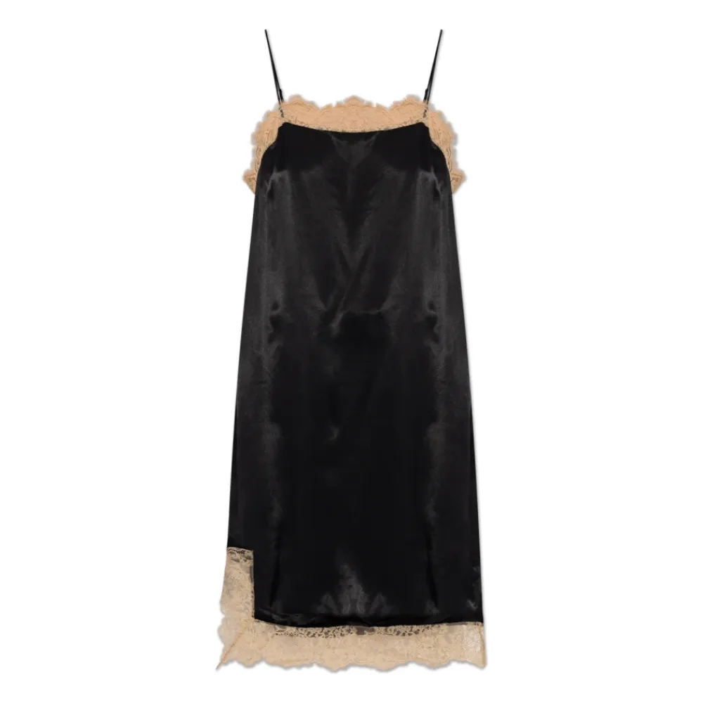 Munthe Rocco Slip Dress er en midilængde, lingeri-inspireret slipkjole, der kombinerer en satinlignende viskosefinish med delikat kontrastblonde. Designet til aften- og cocktailbrug balancerer den en raffineret silhuet med komfortabel, let styling. Nøgleattributter: Sort | Viskose | Satinlignende glans | Komfortabelt at have på | Justerbare stropper | Midi-slip silhuet | Tynde feminine stropper | Kontrast beige blondekanter | Asymmetrisk blondekant | Logofrit design | Dimensioner & pasform: Modelhøjde: 176 cm | Buste: 85 cm | Talje: 60 cm | Hofter: 89 cm | Modellen er iført størrelse: 36 | Regulær pasform | Midi-længde | Sammensætning & pleje: 100% Viskose | Blonde: 100% Polyester
