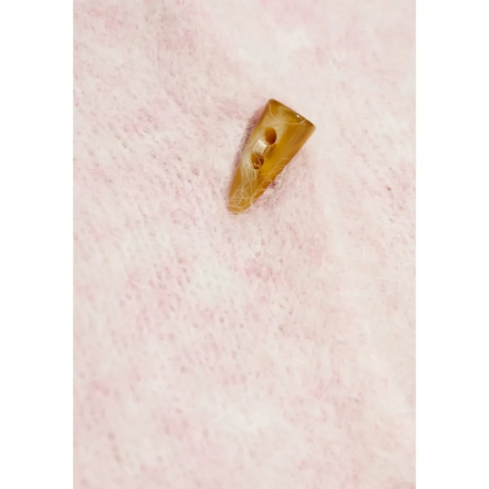 Munthes Locca Cardigan kombinerer en blød, fluffy alpaca-blanding med en kort, boxy silhuet for let lagdeling. Karakteristiske honningfarvede knapper og rummelige påsatte lommer tilføjer praktiske, stilfulde detaljer. Nøgleattributter: Pink | Alpaca | Påsatte lommer foran | Knaplukning foran | Afrundet halsudskæring med lige kant | Kort, boxy snit | Lavtsiddende korte ærmer | Børstet, fluffy ‘sky’-tekstur | Store honningfarvede dekorative knapper | Dimensioner & pasform: Regular fit | Kort, boxy snit med lavtsiddende korte ærmer | Sammensætning & pleje: 55% Alpaca | 24% Akryl | 19% Polyamid | 2% Elastan
