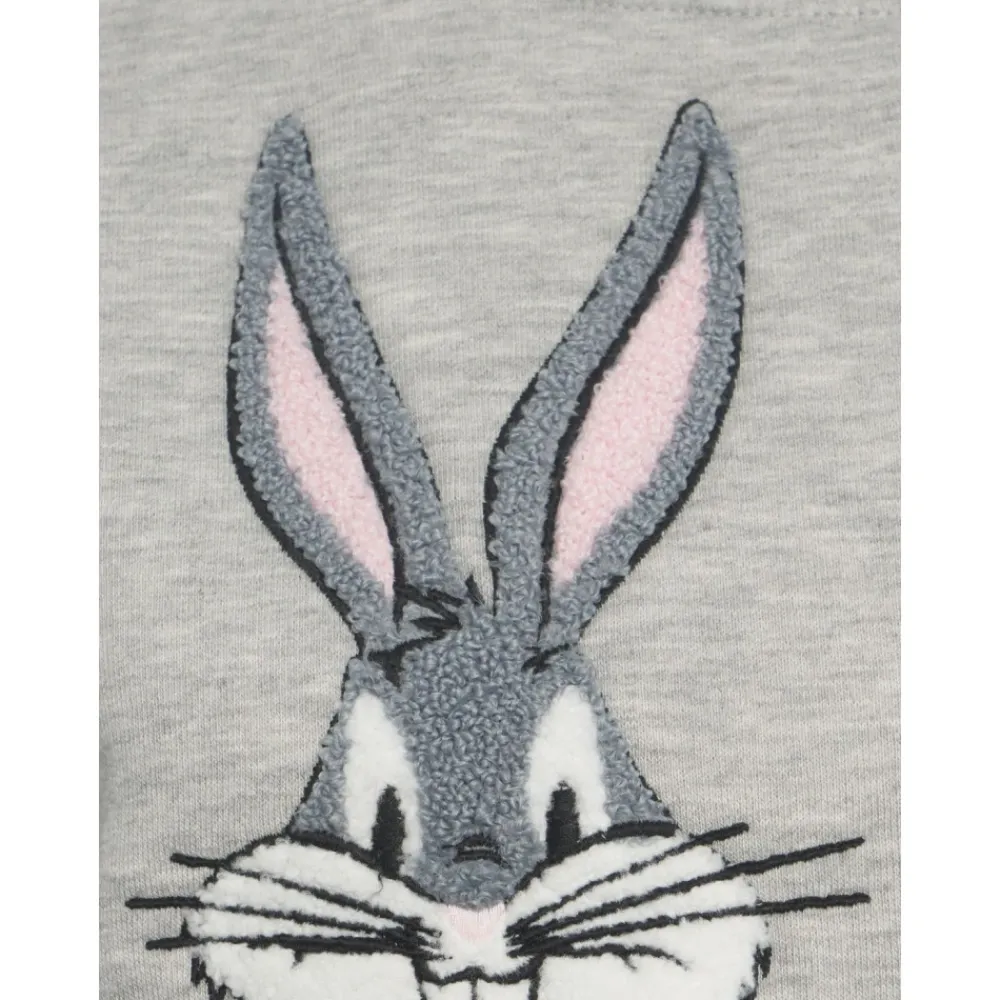 Munthe Lami Sweatshirt kombinerer en blød fornemmelse med et karakteristisk frontprint, med en Bugs Bunny chenillebrodering og et MUNTHE emblem print for et afslappet hverdagslook. Nøgleattributter: Lys grå | Bomuldsblanding | Blødt stof | Ribkanter ved manchetter og søm | Rund hals | Lange ærmer | Frontprint | Chenillebrodering | Dimensioner & pasform: Oversized fit | Sammensætning & pleje: 50% Bomuld | 50% Polyester