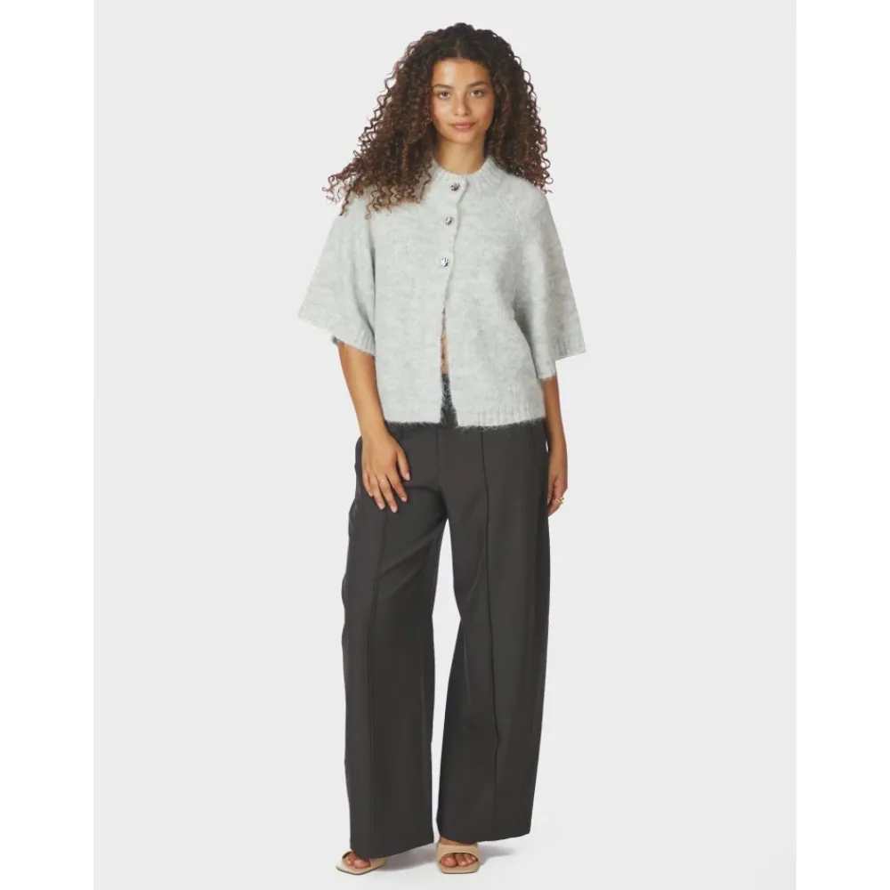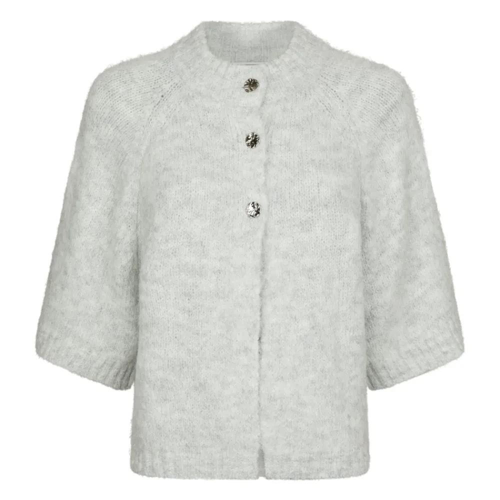 Hold dig stilfuld og hyggelig med Benuta Fluffy Knit Cardigan fra Neo Noir. Denne kortærmede cardigan har tre dekorative guldknapper for et feminint og eksklusivt look. Perfekt til lag-på-lag, den er lavet af fluffy strik med en blanding af polyester, nylon, uld og elastan.