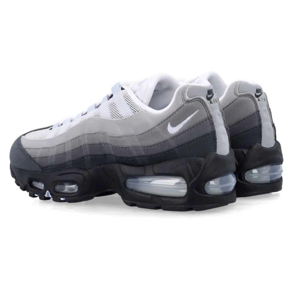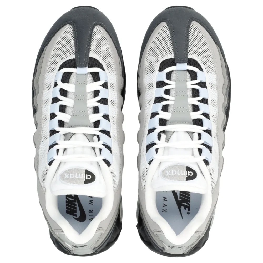 Nike Air Max 95 OG vender tilbage i ‘Big Bubble’-udgaven, der kombinerer silhuettens karakteristiske lagdelte overdel med forstørret Max Air-stødabsorbering for enestående komfort og visuel effekt. Vigtige egenskaber: Grå | Sort | Blålig nuance | Mesh, Syntetisk læder | Åndbar mesh-overdel | Forstørrede Max Air-enheder i hæl og forfod | Responsiv stødabsorbering for komfort, der holder længe | Fleksible riller for bevægelse | Slidstærk gummiydersål | Bølge-lignende lagdelte paneler inspireret af menneskelig anatomi | Gradient farvepalet, der toner fra sort til hvid | Særlig “Big Bubble”-udgave