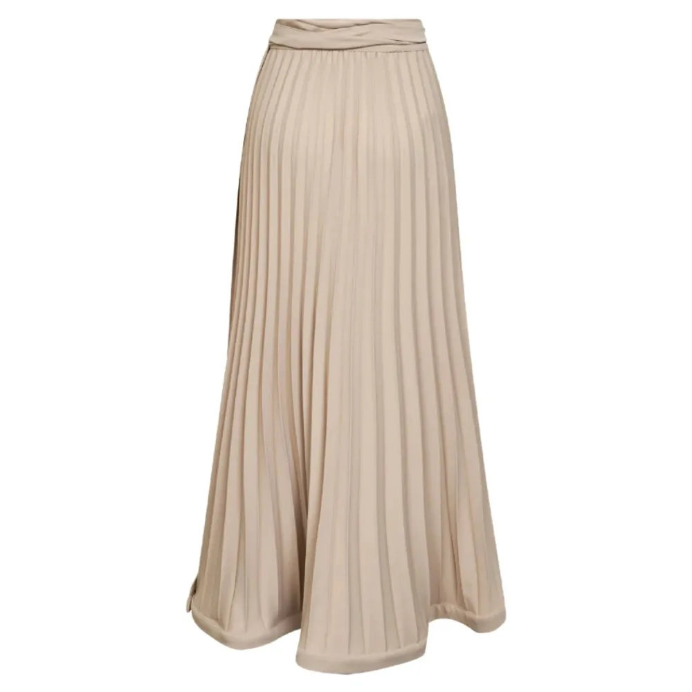 P.A.R.O.S.H. plisseret maxi nederdel, der fremhæver strukturerede plisseringer og en knudedetalje for et raffineret, alsidigt look. Nøgleattributter: Beige | Plisseret design | Knudedetalje
