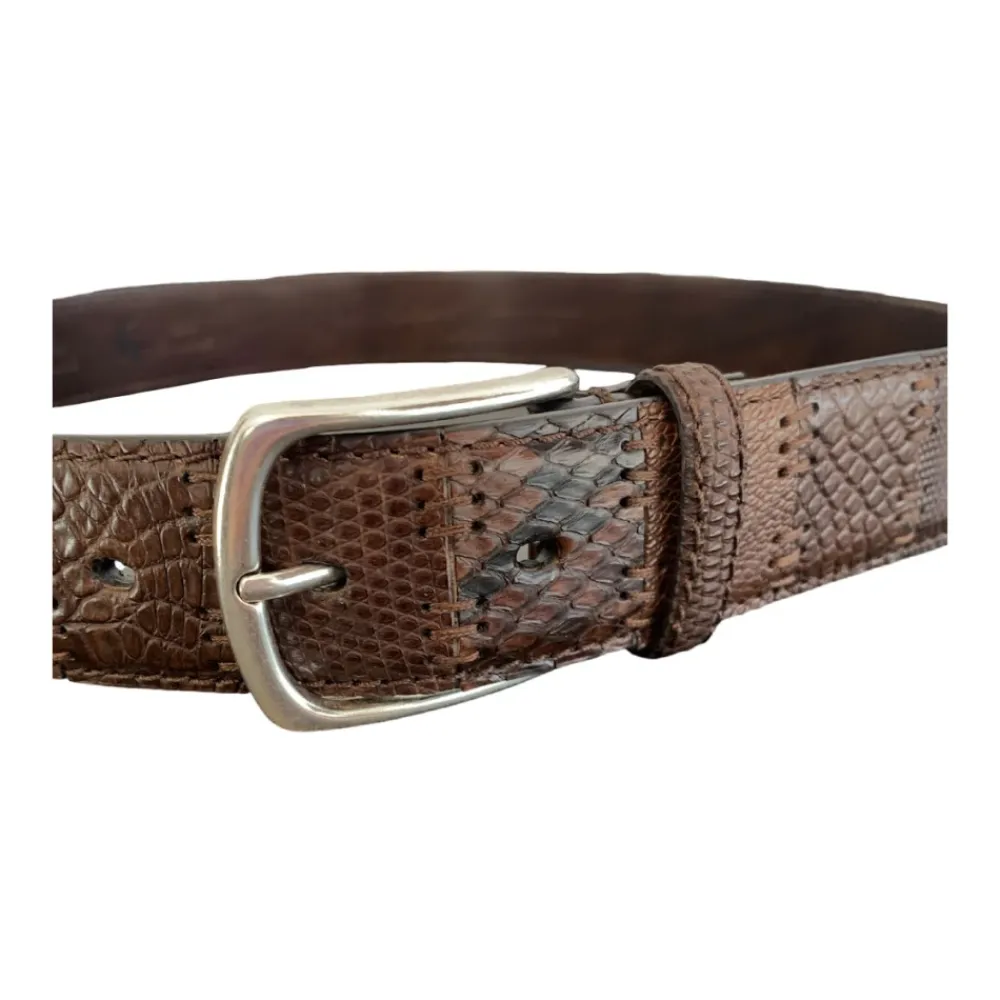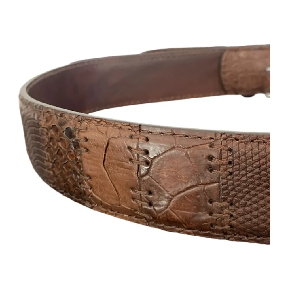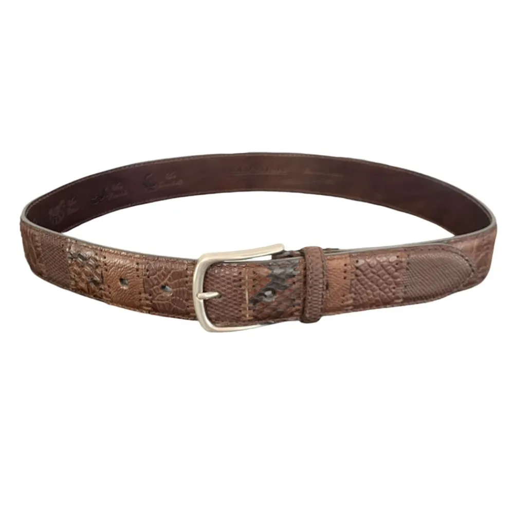 Paolo Vitale Bælter*Eksotisk Læder Patch Bælte Håndlavet Brun