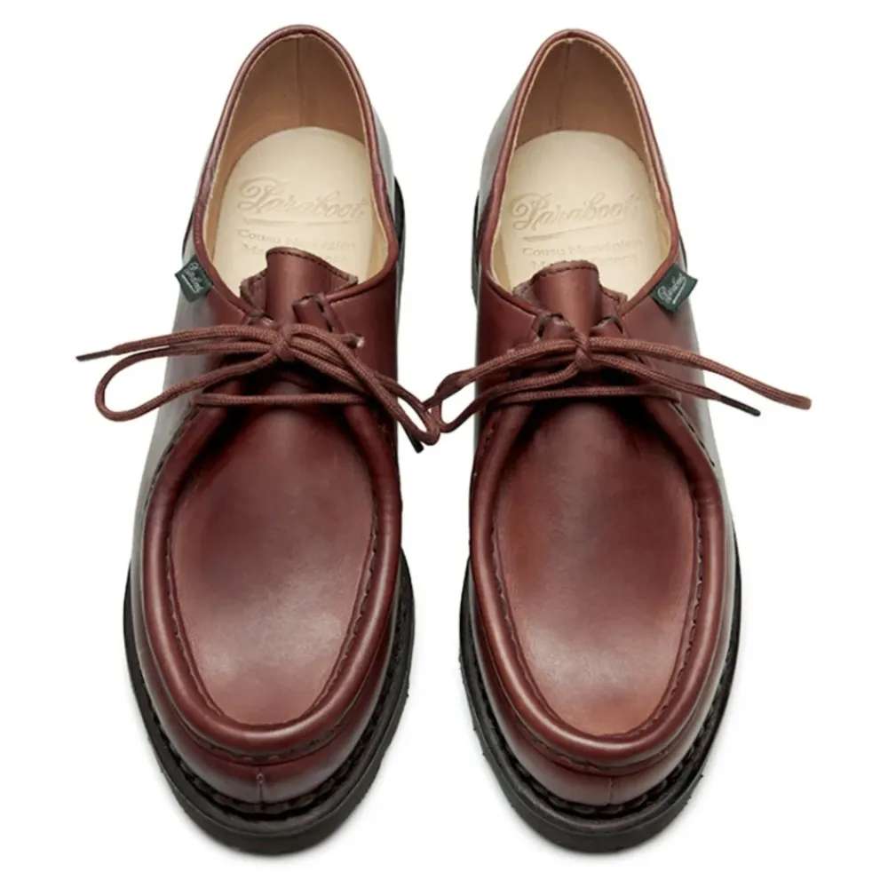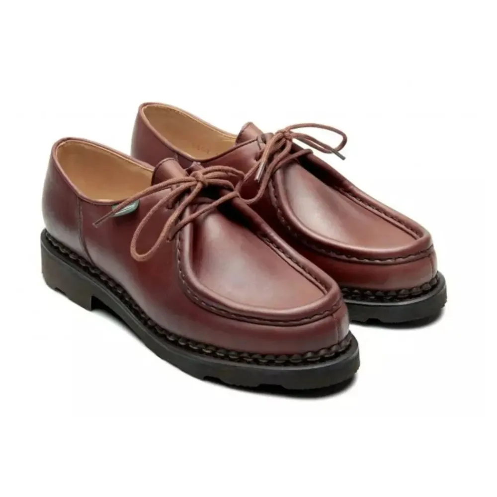 Paraboot Michael/Griff II Togo-Lis er flade sko med snørebånd, designet til hverdagsbrug, der kombinerer en lav profil med en robust konstruktion, der er velegnet til brug i byen. Vigtigste egenskaber: Brun | Marron | Snørelukning | Flad silhuet | Snøredesign