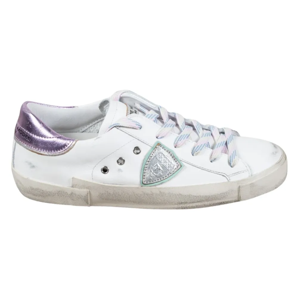 Philippe Model PRSX Low fra Philippe Model opdaterer brandets ikoniske PRSX-silhuet med en overdel i kalveskind med slidt effekt og en kontrasterende lilla metallisk spoiler for et friskt, city-ready look. Nøgleattributter: Multicolor | Blanc | Rose | Kalvelæder | Åndbart for | Polstret indersål | Aftagelig polstret indersål | Åndbart bomuldsfrottéfor | Gummiydersål | Lav silhuet | Slidt / vintage effekt på overdelen | Lilla metallisk spoiler | Platin-effekt sideskjold | Håndværksmæssigt slidt bånd på sålen | Dimensioner og pasform: Sålhøjde: 2,5 CM | Sammensætning og pleje: Kalvelæder (overdel) | Bomuldsfrotté (for) | Aftagelig polstret indersål | Gummi (sål) | Rengør med en blød klud eller børste med bløde børster. Undgå slibende . Må ikke maskinvaskes.