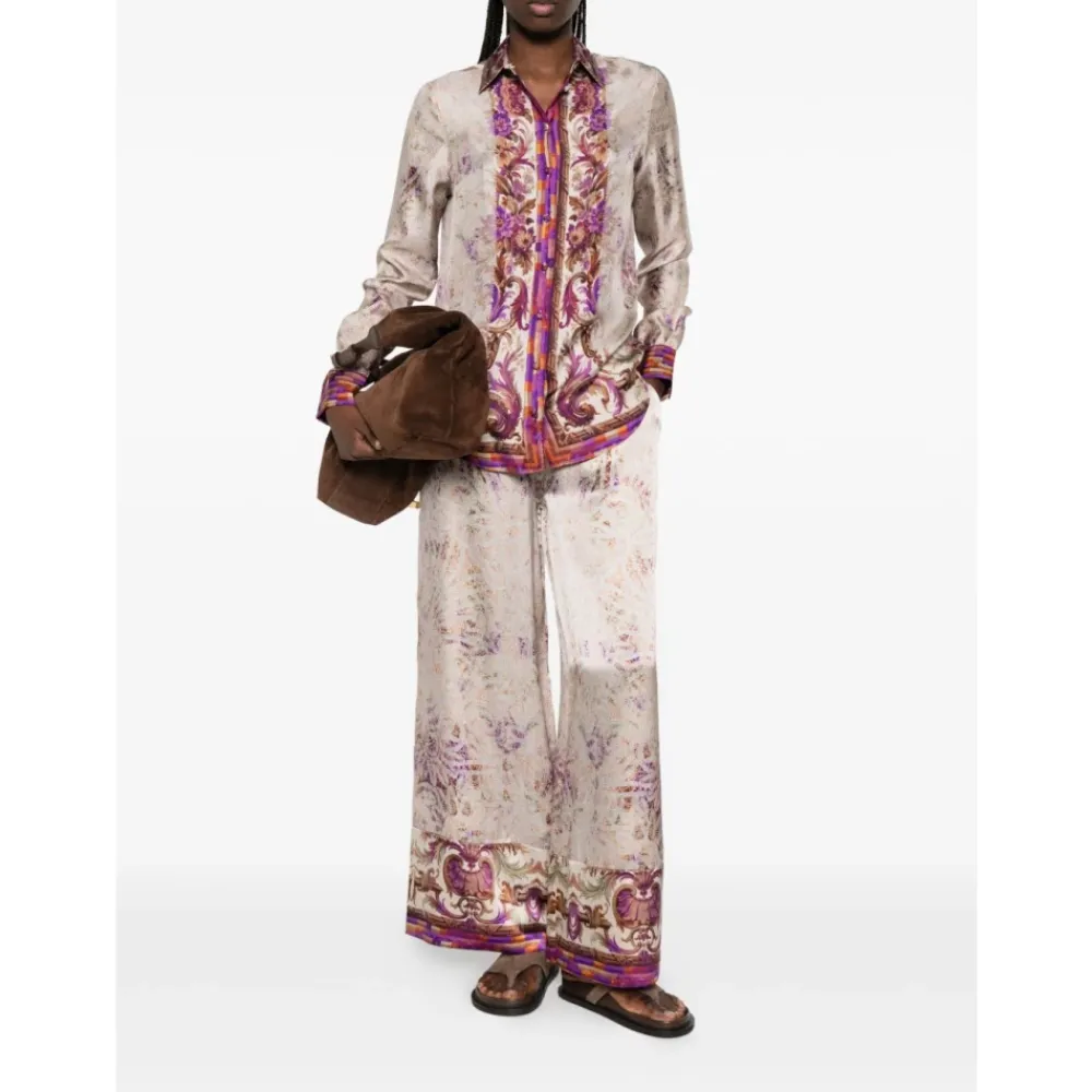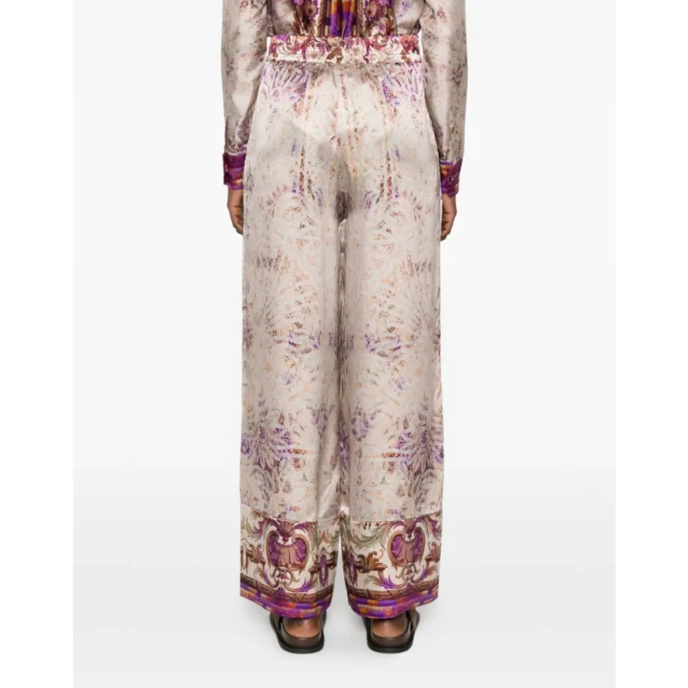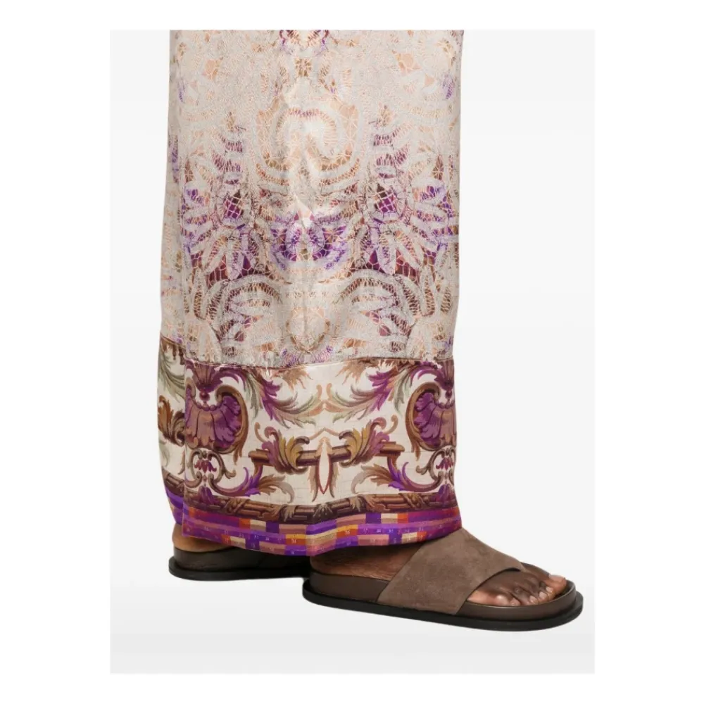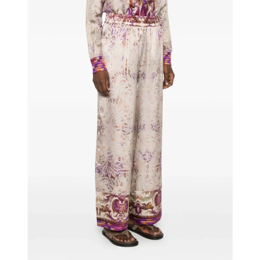 Pierre-Louis Mascia Mutka Palazzo Bukser kombinerer smukke all-over print med en flydende, højtaljet palazzo silhuet for et elegant look fra dag til nat. Nøgleattributter: Flerfarvet | Pink | Silke | Elastisk linning | Snøre i linningen | Bredt ben | Palazzo silhuet | All-over print | Kantprint | Høj talje | Dimensioner og pasform: Regular fit | Sammensætning og pleje: 100% Silke