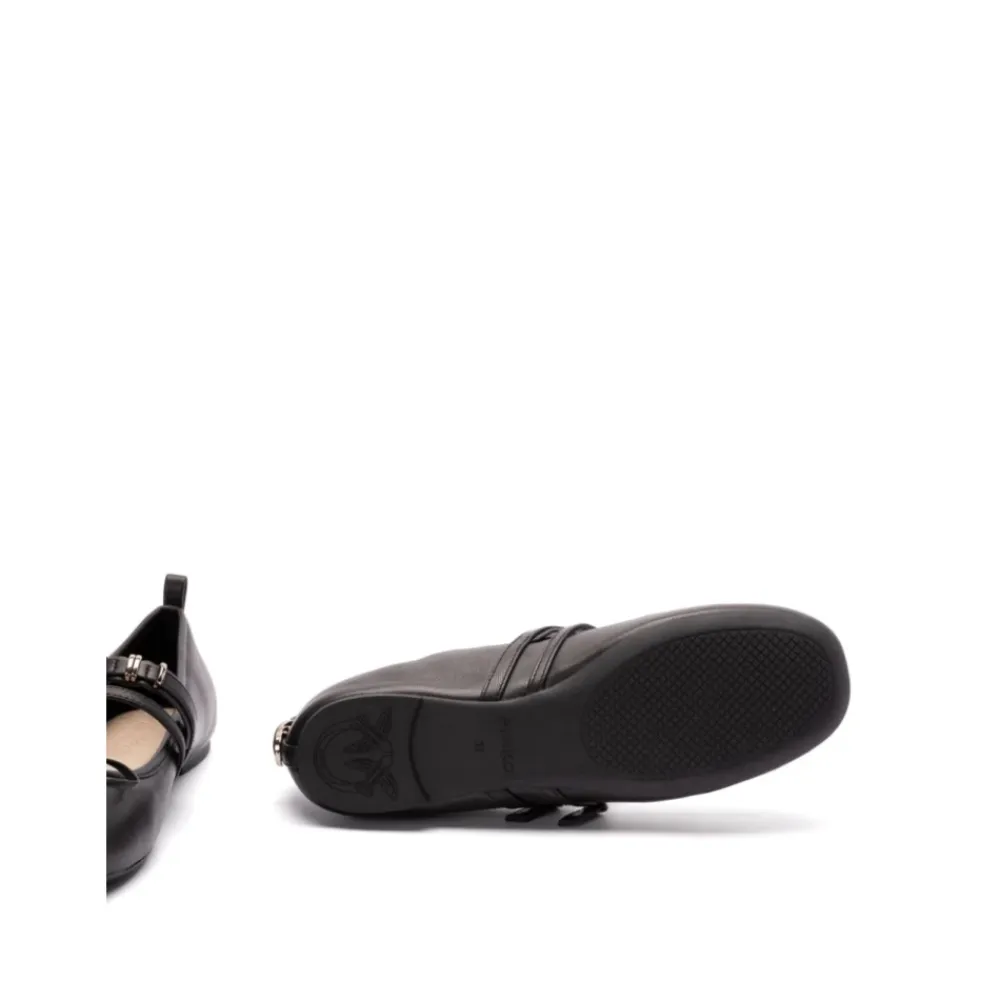 PINKO`s Nappa Læder Ballerina Sko tilbyder et klassisk design med et moderne twist, med blødt nappa læder og en karakteristisk sløjfe detalje. Produkt detaljer: Sort | Gedeskind | Justerbare stropper | Sløjfe detalje | Rund snude | Metal Love Birds Diamond Cut logo | Dimensioner og pasform: Normal pasform | Sammensætning og pleje: 100% Gedeskind | Rengør med en blød klud.
