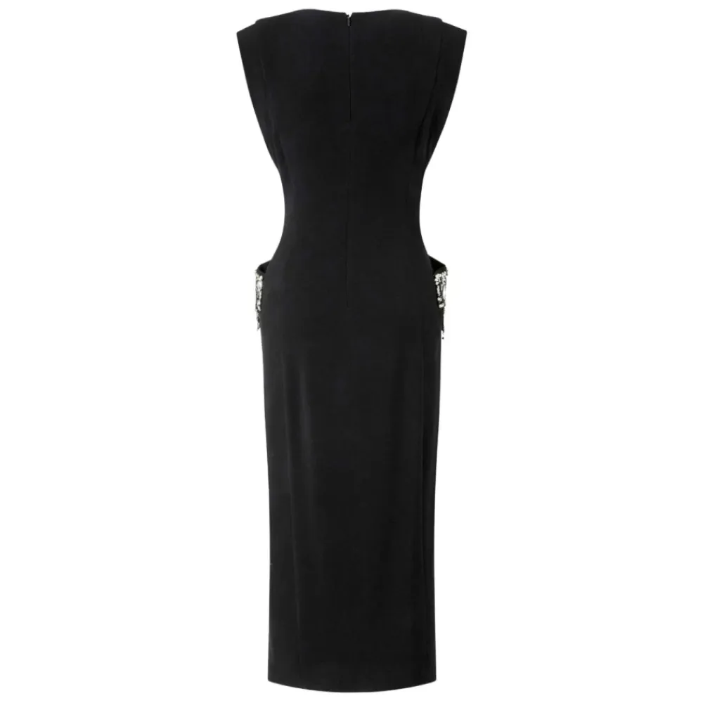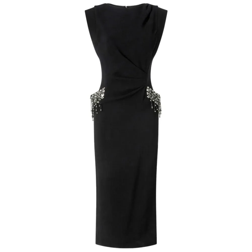 PINKO Freccette er en midikjole, der er klar til hverdagsbrug, og som leverer en raffineret, midt-læg silhuet til alsidige hverdags- og smarte, afslappede looks. Nøgleattributter: Sort | Nero limousine | Midi længde | Hverdags kjole silhuet