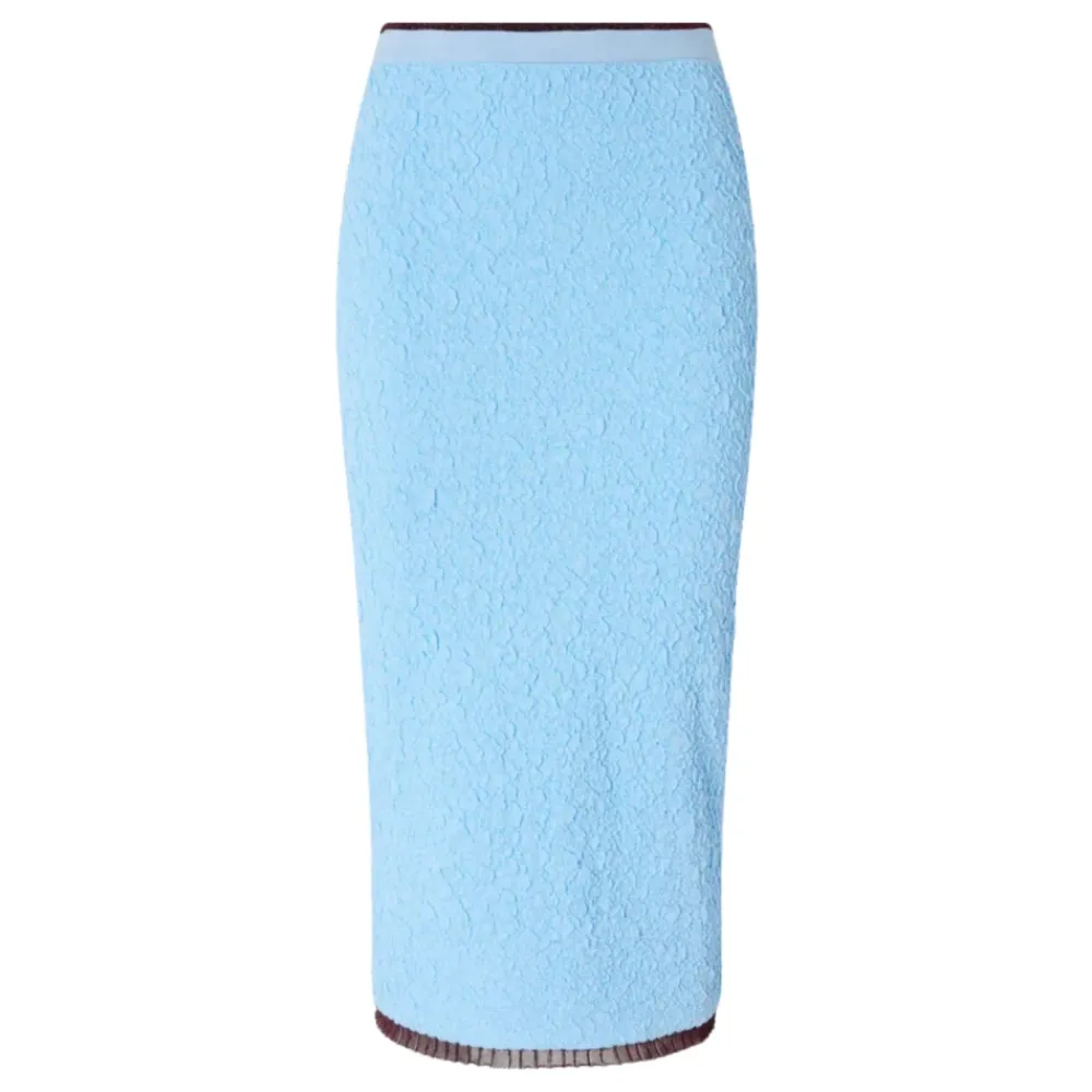 PINKO Fitted midi nederdel tilbyder en strømlinet, kropsnær silhuet, der er ideel til styling fra dag til nat. Dens fitted pasform og midi længde gør den til et alsidigt stykke tøj til både skræddersyede og afslappede looks. Nøgleattributter: Blå | Lys blå | Fitted silhuet | Midi længde | Dimensioner & pasform: Fitted fit