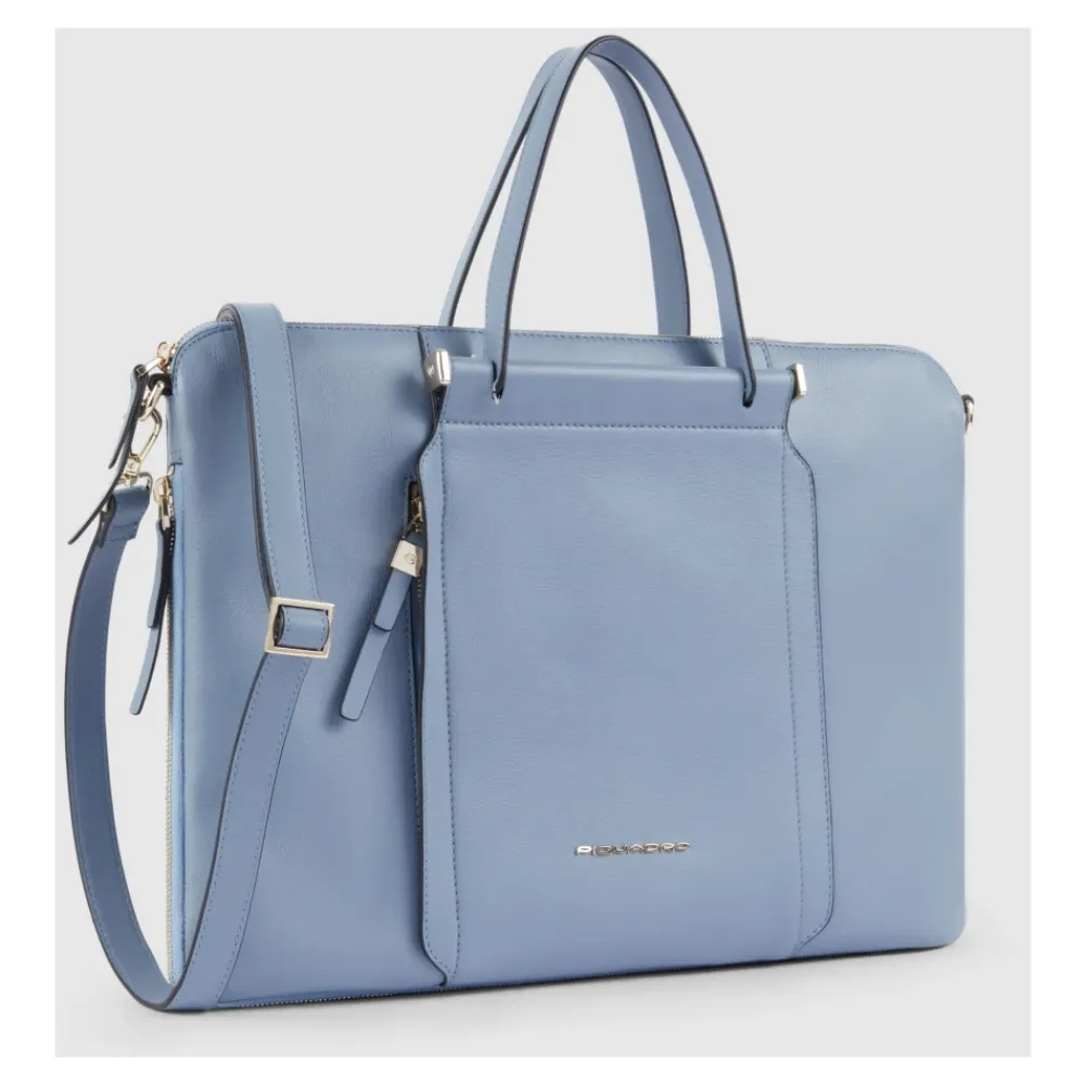 Piquadro Udvidbar Slim Laptop Taske 15,6″ kombinerer en slank dokumentmappe silhuet med udvidelig kapacitet, designet til at beskytte en 15,6″ laptop og en iPad Pro til daglig pendling og forretningsrejser. Nøgleattributter: Blå | Azzurro | Læder | Stødabsorberende laptopbeskyttelse | RFID-antifraudsbeskyttelse | Aftagelig skulderrem | Udvidbart system | Fast iPad Pro-rum | Slank dokumentmappe silhuet | Syet håndtag | Dimensioner og pasform: 42,0 x 30,0 x 3,0 cm | Slank profil | Passer til op til 15,6″ laptop | Sammensætning og pleje: Læder | Foring: 100% Polyester