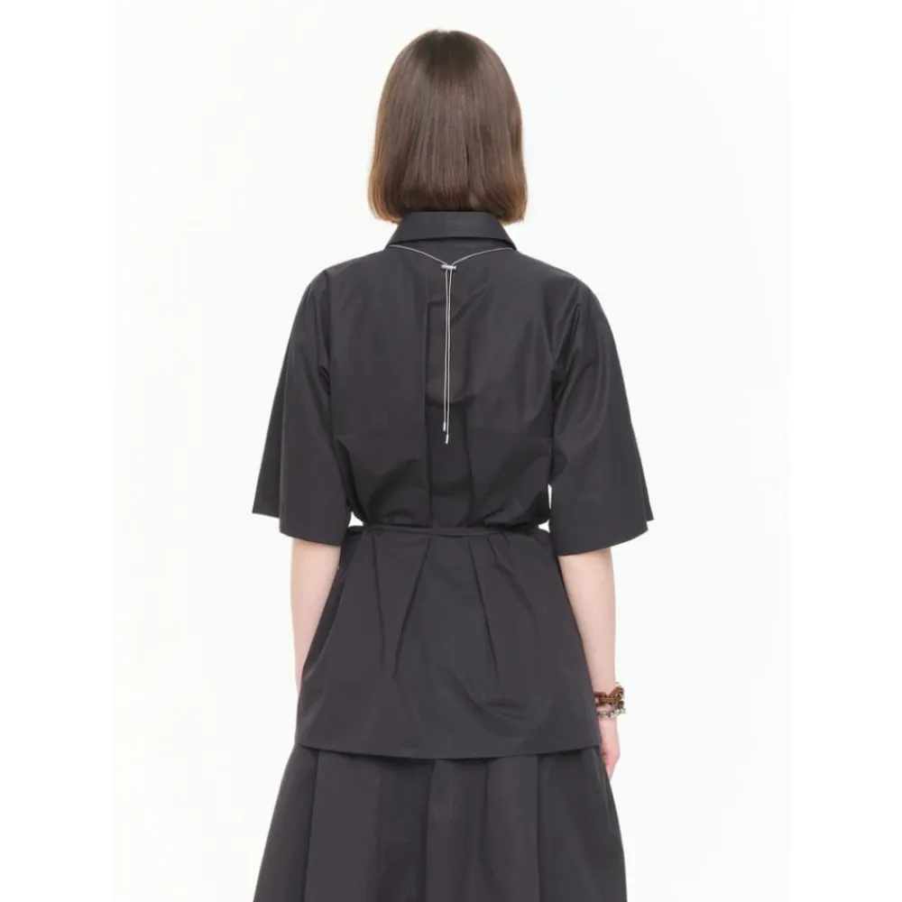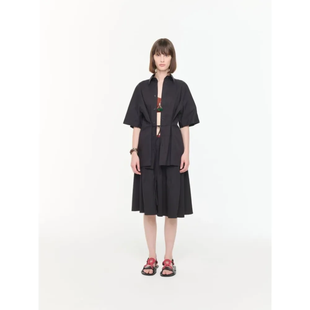 Plan C’s skjorte med bindebælte kombinerer en klassisk skjortesilhuet med et indbygget bindebælte for nem taljedefinition. Velegnet til både et poleret hverdagslook og smarte, afslappede outfits. Vigtigste egenskaber: Sort | Selvbinderbælte | Bindebælte