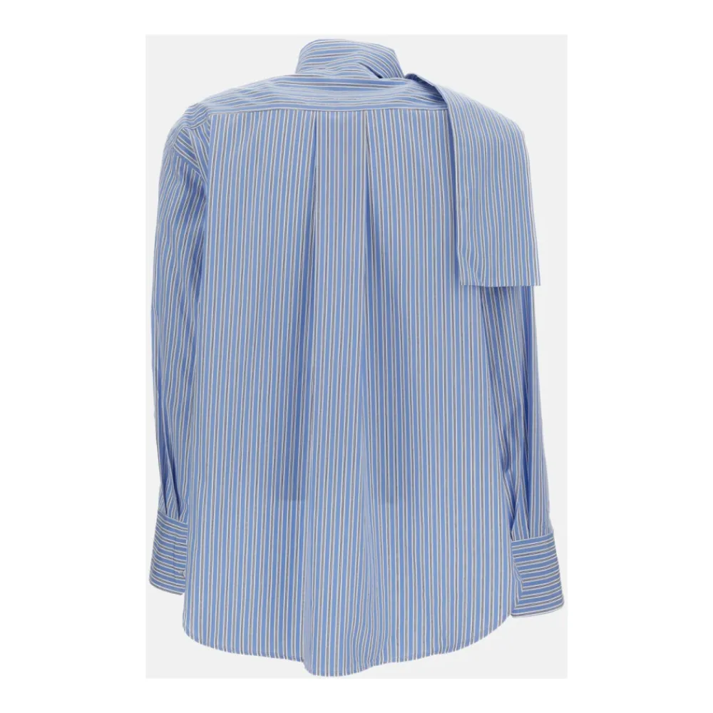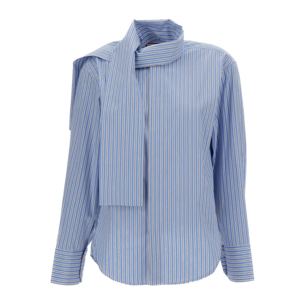 Plan C Stribet bomuldsskjorte kombinerer et klassisk stribet poplin-look med et aftageligt tørklæde for alsidig styling. Fremstillet i Italien og afsluttet med knaplukning foran og en brystlomme, passer den til både skræddersyede og afslappede outfits. Nøgleegenskaber: Blå | Klar blå | Bomuld | Aftageligt tørklæde | Knaplukning foran | Brystlomme | Forlænget manchetter | Rund halsudskæring | Stribet mønster | Lange ærmer | Slids i sømmen | Sammensætning & pleje: 100% bomuld | Maskinvask kold (30°C).