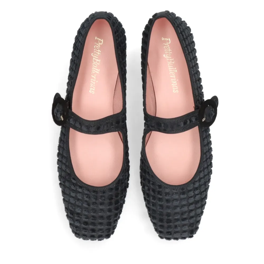 Pretty Ballerinas’ Elegante Mercedita de Terciopelo Brocado kombinerer en klassisk Mary-Jane silhuet med brokadefløjl for et raffineret, festklart look. Den dækkede spænde og læderindersålen giver et poleret udseende med komfortabel brug. Nøgleattributter: Sort | | Fløjl brokade | Dækket spænde på vristen | Læderindersål | Tekstilforing | Gummi ydersål | Mary-Jane silhuet | Brokadefløjlsoverdel | Dækket spænde detalje | Sammensætning & pleje: Overdel: Fløjl brokade | Indersål: Læder | Foring: Tekstil | Ydersål: Gummi