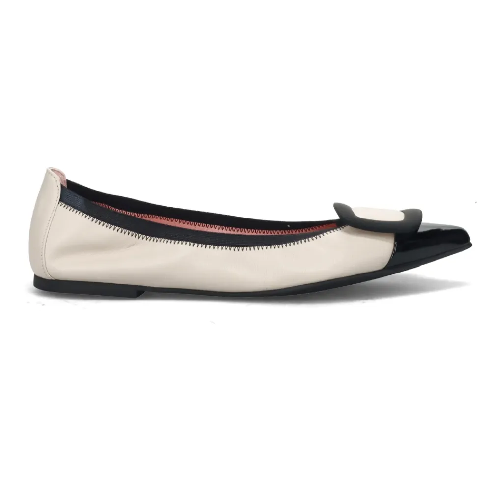 Træd ind i elegance med Ella Ballerinaer, inspireret af jazzlegenden Ella Fitzgerald. Disse sko kombinerer en feminin silhuet med edgy detaljer for et fashionabelt look. Produkt detaljer: Elfenben | Sort | Læder | Tilspidset tå | Gummisål | Chic spædedetalje | Dimensioner og pasform: Almindelig pasform | Sammensætning og pleje: Læder | Laklæder | Aftørres med en fugtig klud