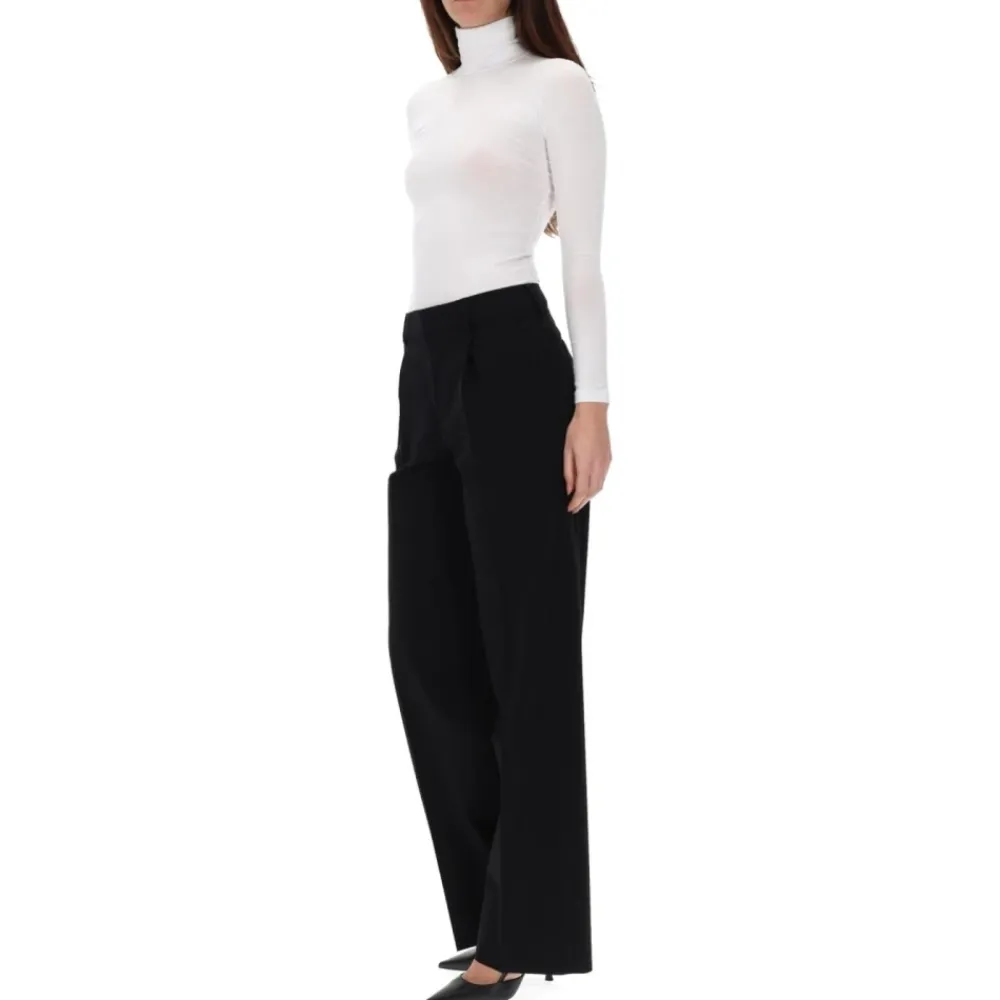 PT Torino Wide Leg Skræddersyede Bukser tilbyder en raffineret silhuet med brede ben, høj talje og elegante læg, designet til nemt at gå fra kontorbeklædning til aftenlook. Vigtigste egenskaber: Sort | Bredbenet silhuet | Læg foran | Skræddersyet konstruktion | Dimensioner og pasform: Højtaljet pasform | Bredbenet pasform
