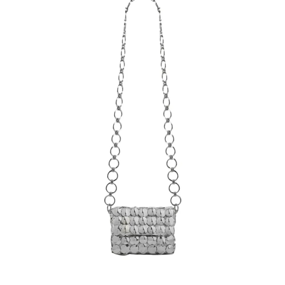 Rabanne Pochette er en kompakt crossbody-taske designet til strømlinet brug fra dag til aften. Dens pochette-silhuet er lavet til håndfri brug og nem organisering af dine væsentlige ting. Vigtige egenskaber: Grå | Sølv | Crossbody-rem | Pochette-silhuet