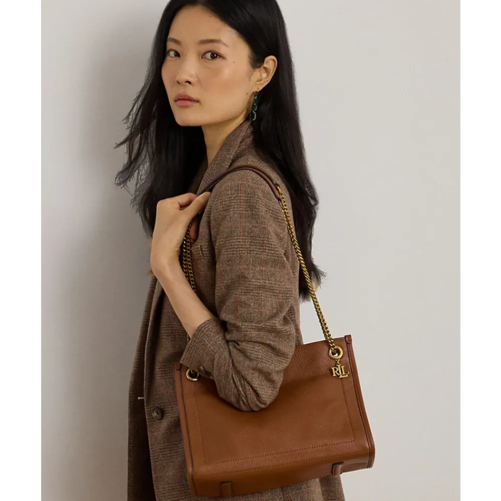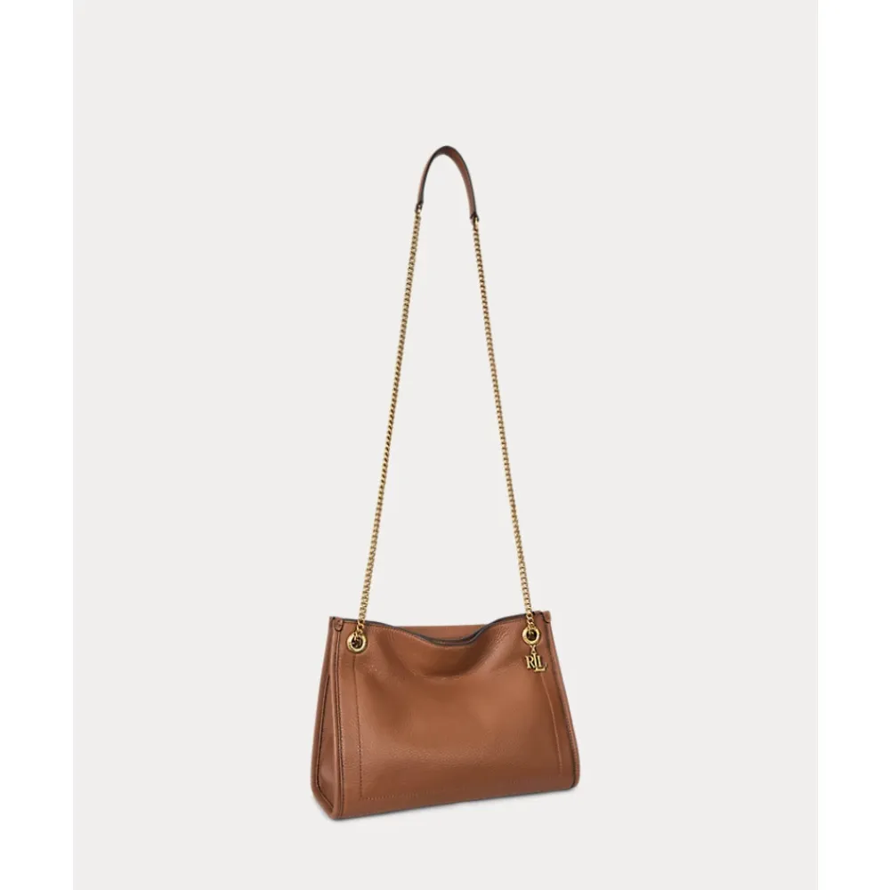 Ralph Lauren Brdly Md 431980173001 Skuldertaske er en kompakt skuldertaske i læder, designet til hverdagsbrug. Den har justerbare kædehåndtag og kan bæres som skuldertaske eller crossbody-taske for alsidig brug. Vigtige egenskaber: Brun | Cuoio | Læder | Justerbar skulderrem med kæde | Kan bæres crossbody | Magnetlukning | Enkelt rum | Kædedetalje ved håndtag | Skuldertaske silhuet | Mål & pasform: 21,5 x 28,5 x 11,5 cm | Sammensætning & pleje: Læder