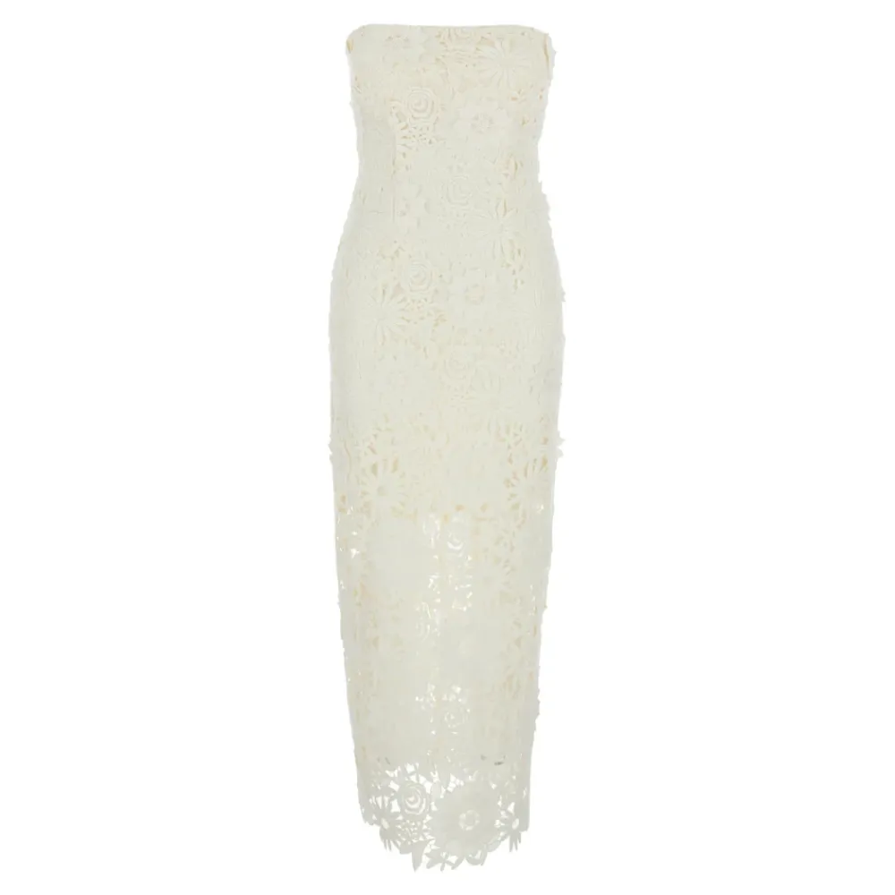 Vær den første til at anmelde “ROTATE Birger Christensen Kjoler*Maxikjole med slids bagpå og blondedetaljer Hvid” Annuller svar