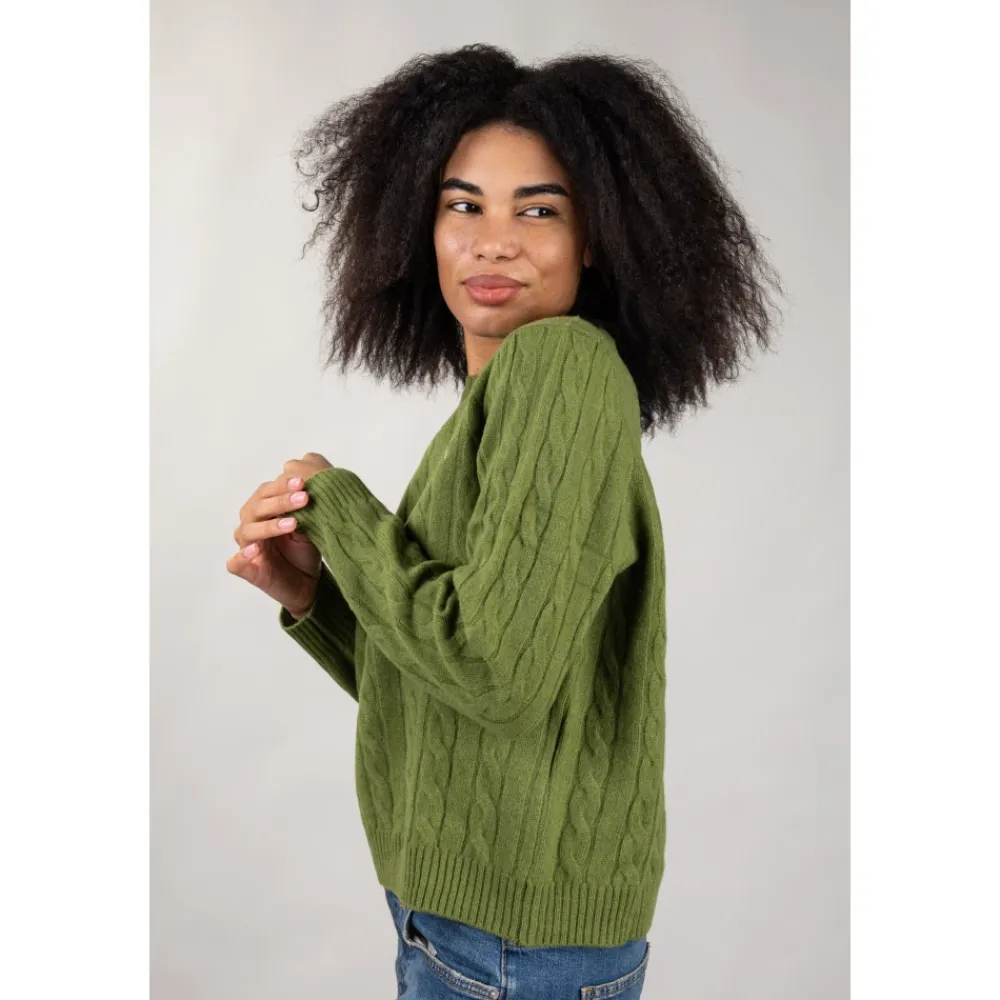 Roy Roger’s Striktrøjer & Sweatere*Cable Crew Neck Grøn