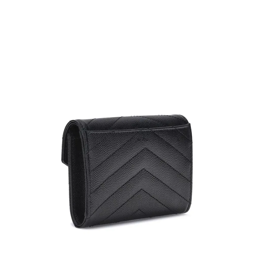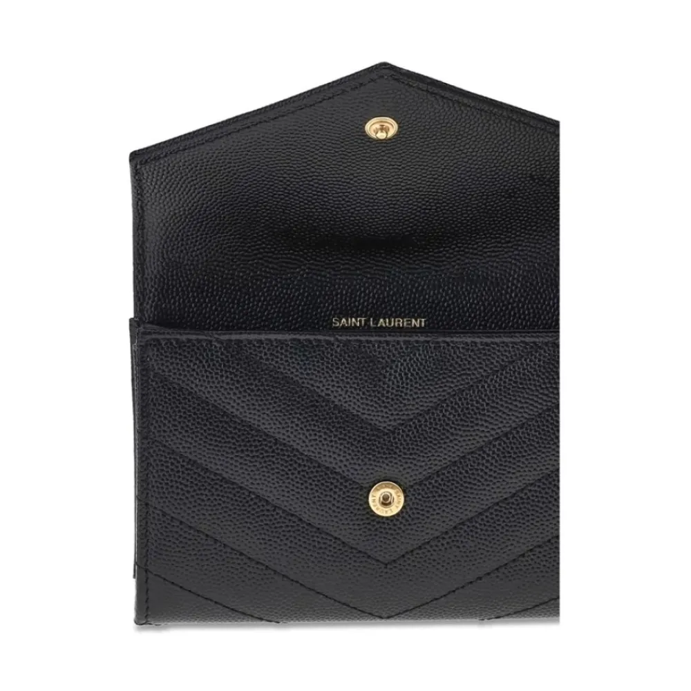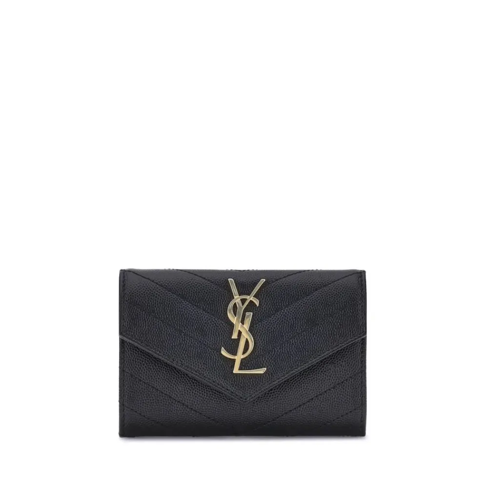 Saint Laurent Punge & Kortholder*Elegant Læderpung med Logo Plaque Sort
