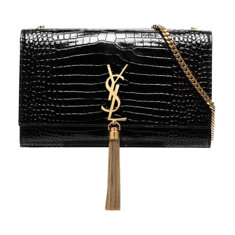 Saint Laurent Skuldertasker*Kate Medium Taske i krokodillepræget læder med kvast Sort