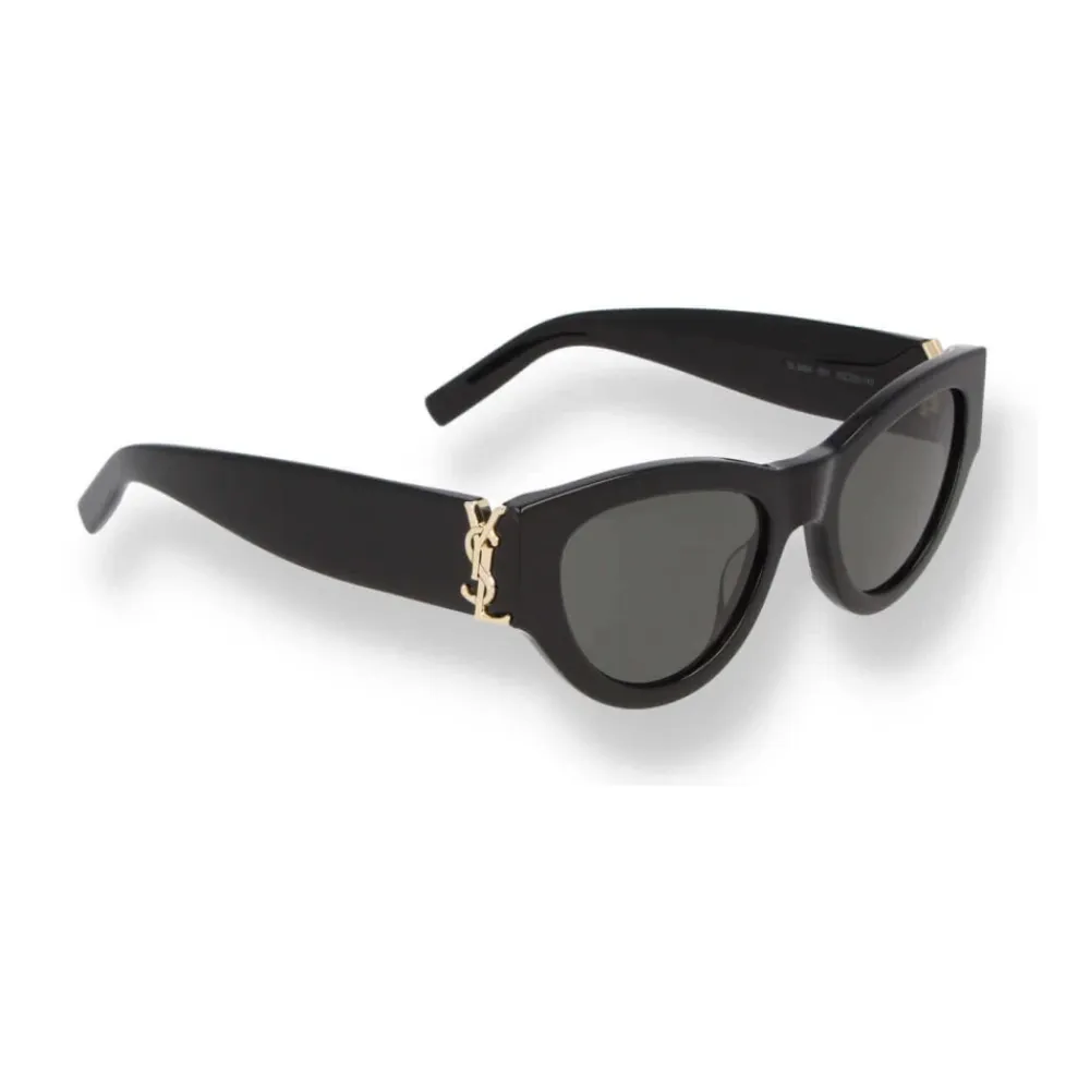 Forhøj din stil med disse Saint Laurent SL M94 solbriller til kvinder. Den blanke sorte acetatramme og den solide grå nylonlinse udstråler sofistikeret, mens det gyldne YSL-monogram på tempelene tilføjer et strejf af luksus. Mål: Linsebredde – 53 mm, Bro – 20 mm, Tempel – 145 mm.