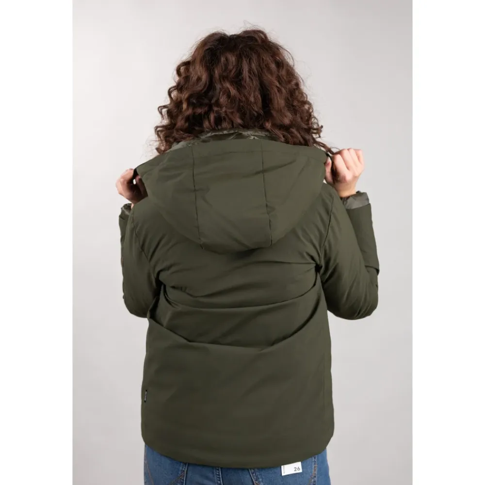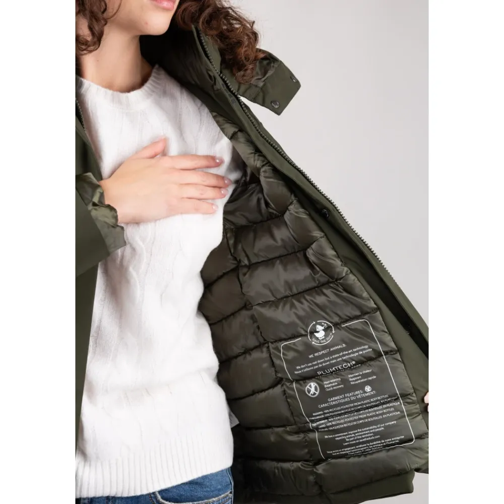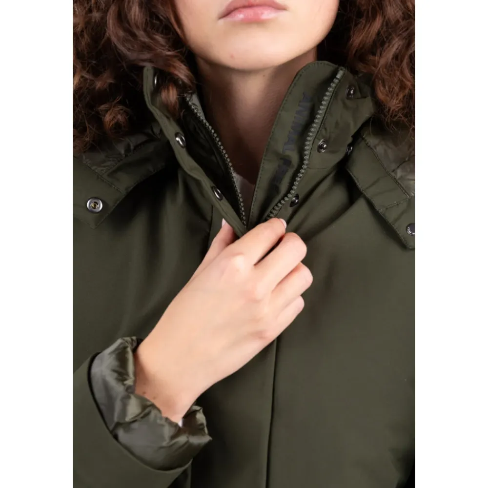 Save The Duck Elaine Parka kombinerer pålidelig vejrbeskyttelse med en kort A-linje silhuet. Den har en aftagelig hætte og lynlåslommer for praktisk anvendelse i hverdagen. Nøgleegenskaber: Grøn | Land Green | Polyester | Vandafvisende (5000 WP mm/24h) | Åndbart stof (5000 MVP g/m2/24h) | Polyurethan membran for vejrbeskyttelse | Aftagelig hætte | Skjult central lynlås med stolpelukning og trykknapper | Lynlåslommer i siden | Brugerdefinerede lynlåstrækkere | Kort A-linje silhuet | Synligt for ved manchetter | Skjult central lynlås med stolpelukning og trykknapper | Tone-i-tone varmeforseglet logo | Dimensioner & pasform: Kort A-linje pasform | Sammensætning & pleje: Ydre lag: 100% polyester | Membran: polyurethan | Fyld: PET | For: 100% nylon