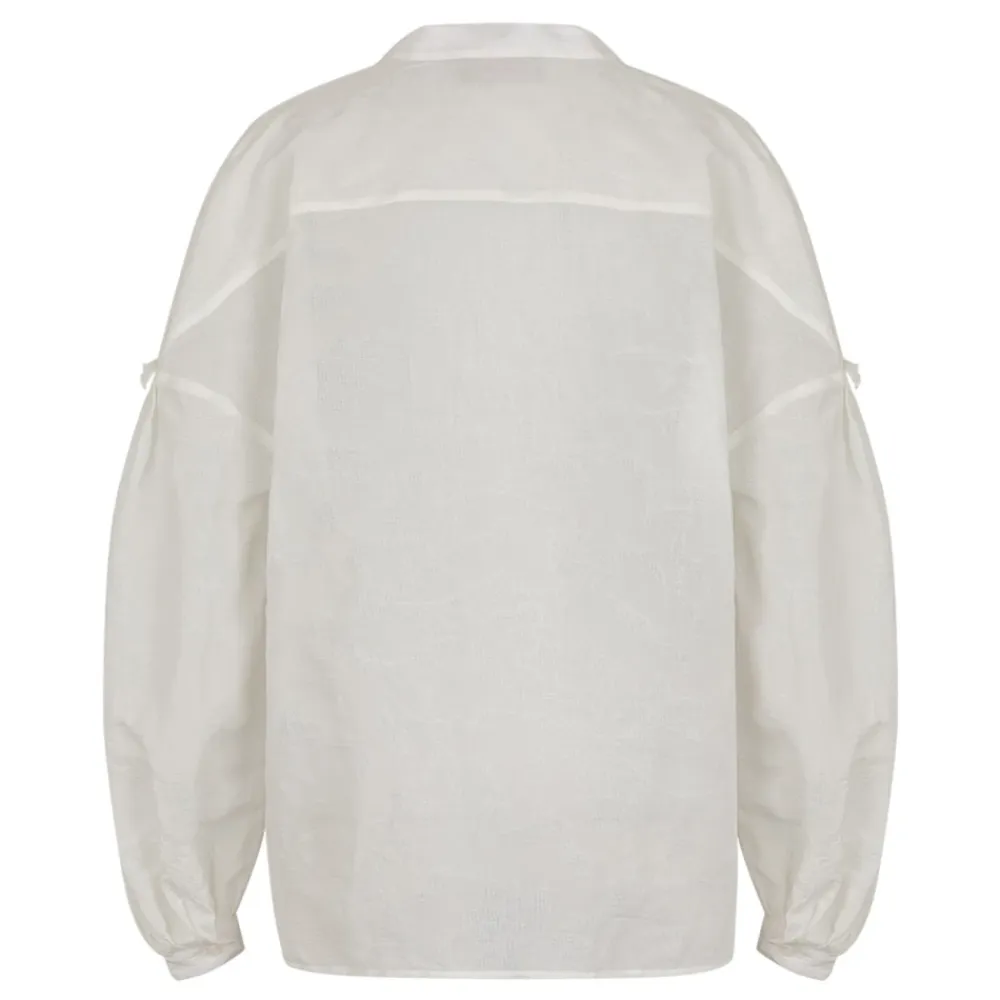 Seafarer Camicia Lena er en rynket bomuldsskjorte, der fremhæver delikate flæser hen over brystet og manchetterne for et raffineret hverdagslook. Vigtige egenskaber: Hvid | Bomuld | Lukning med knapper foran | Manchetter med knapper | Piercinglukning på kraven | Flæser midt på brystet og manchetter | Knap midt på brystet | Piercingdetalje på kraven | Sammensætning og pleje: 100% bomuld