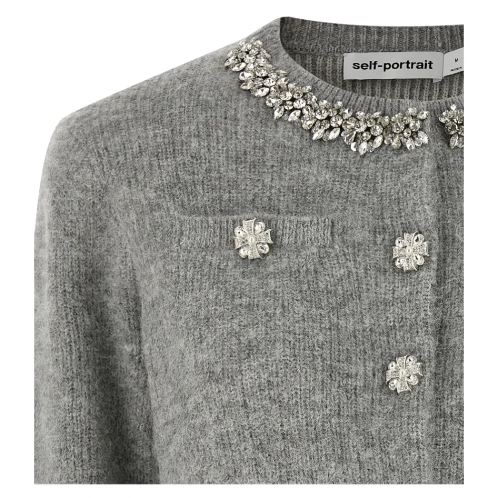 Self Portrait Striktrøjer & Sweatere*Fluffy Crystal Trim Cardigan Grå