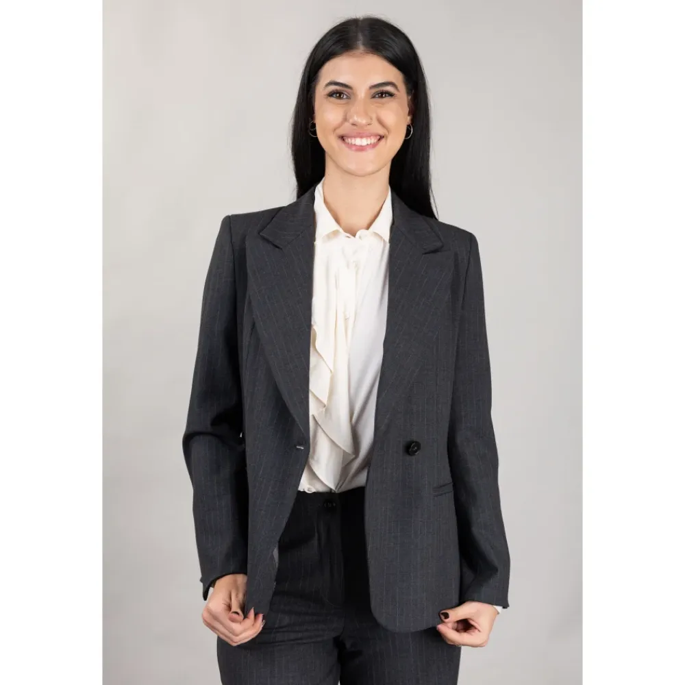 Seventy blazer, der tilbyder en raffineret, skræddersyet silhuet, ideel til brug fra arbejde til aften. Vigtigste egenskaber: Grå | Grigio scuro