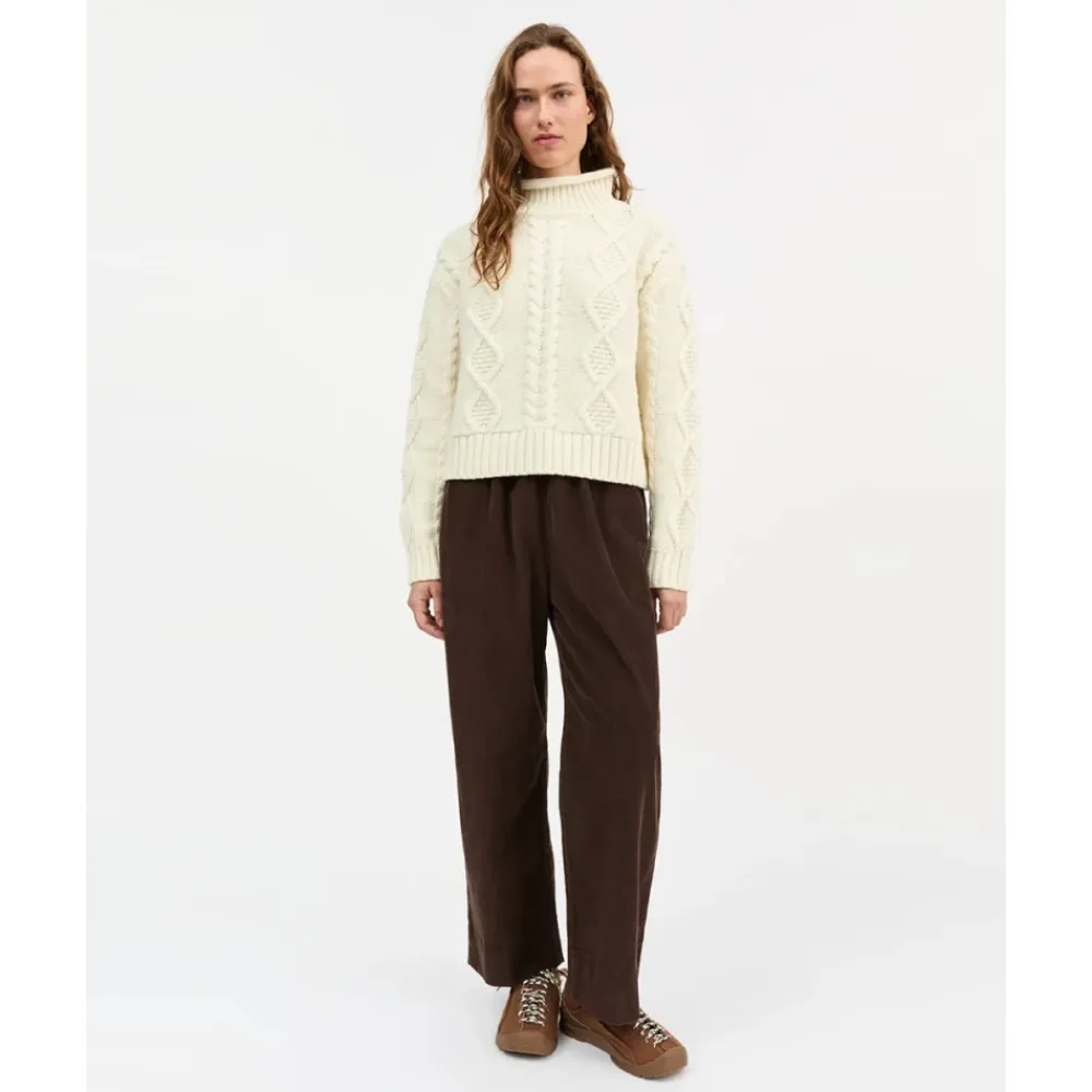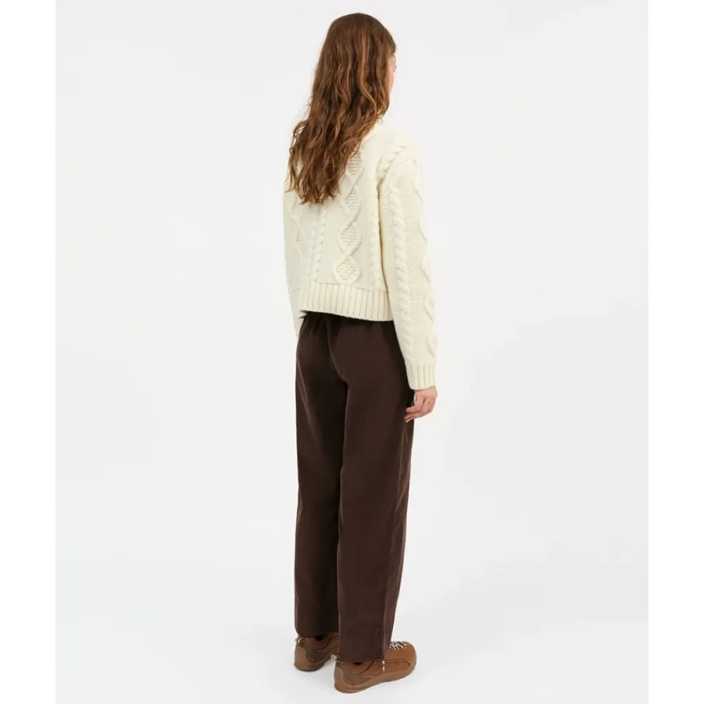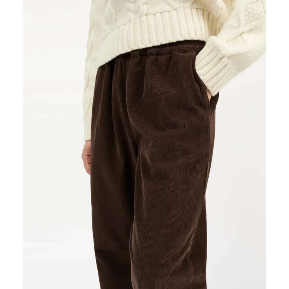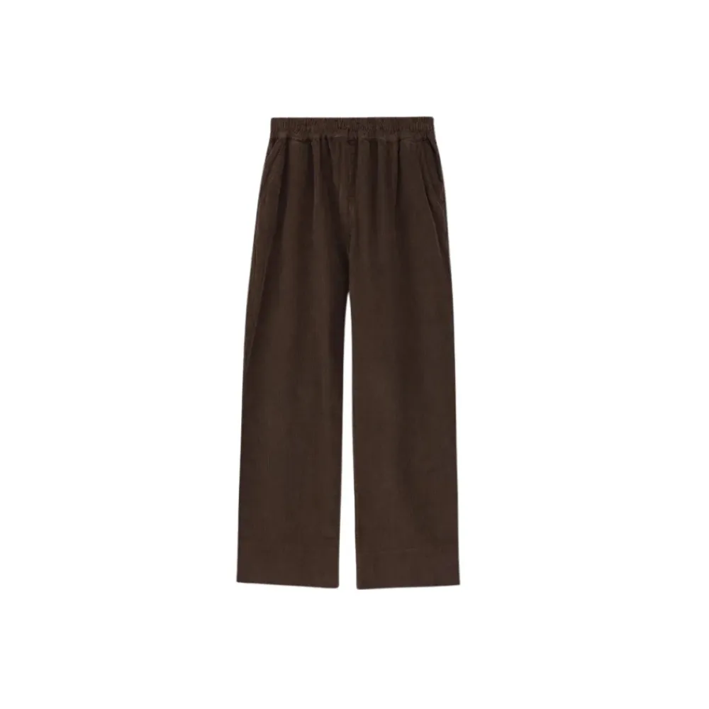 Skall Studio Jasmine Trousers er afslappede cordbukser med høj talje og elastisk linning, designet til behageligt hverdagsbrug. Vigtigste egenskaber: Mørkebrun | Bomuldskordfløjl | Elastisk linning | To sidelommer | Pull-on stil | Lige, bredt ben | Cordfløjl tekstur | Dimensioner og pasform: Løs pasform | Høj talje | Elastisk linning | Lige, bredt ben | Lidt cropped ankel længde | Tag din normale størrelse | Sammensætning og pleje: 100% bomuldskordfløjl | Maskinvask ved maks. 30°C.