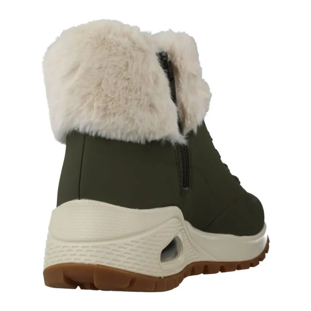 Skechers Uno Rugged – Fall Air er en snørestøvle, der kombinerer vandreinspireret styling med Skechers’ komfortteknologier, designet til hverdagsbrug i koldt vejr. Nøgleattributter: Grøn | Syntetisk | Skechers Air‑Cooled Memory Foam indersål | Skech‑Air synlig airbag-mellemsål | Perforeret overdel for åndbarhed | Snørelukning foran | Lynlås i siden for nem på- og aftagning | Fleksibel ydersål med godt greb | Perforeret durabuck-overdel | Faux-fur kant | Lynlåslukning i siden | Skechers logo detalje | 3,81 cm hæl | Dimensioner og pasform: Hælhøjde: 3,81 cm | Fås i Medium og Wide bredder | Sammensætning og pleje: Overdel: Syntetisk, Tekstil | Ydersål: Syntetisk | Foring/Indersål: Tekstil